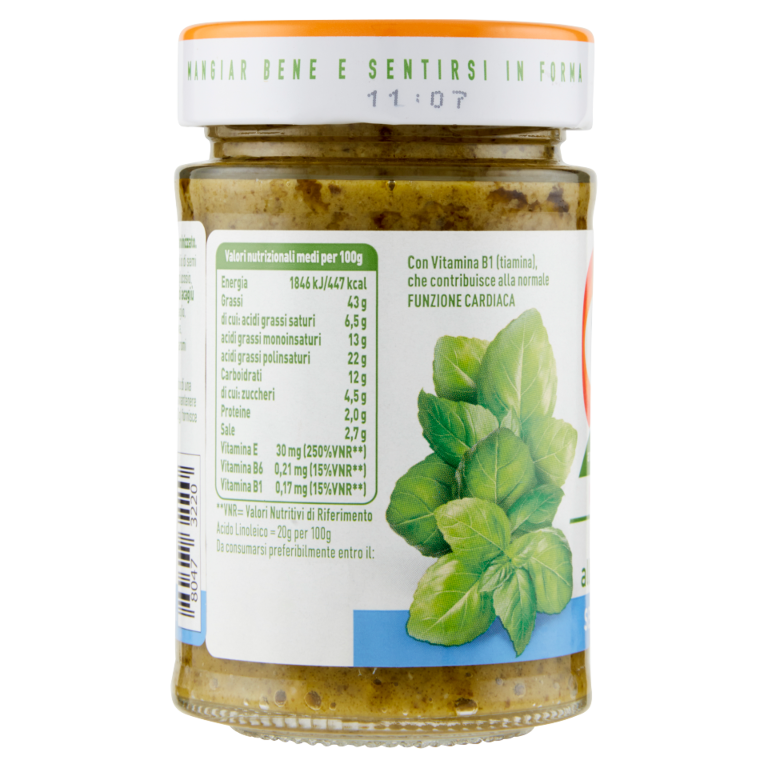 Pesto alla genovese senza aglio con olio di semi di mais vitaminizzato