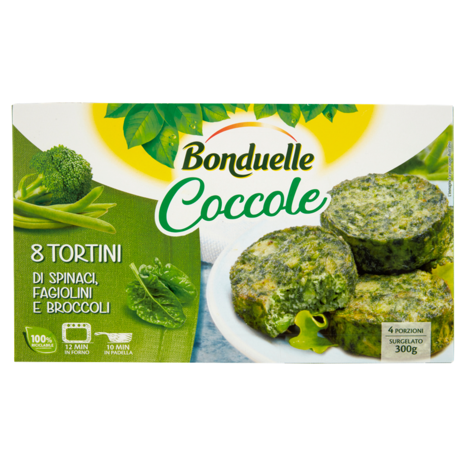 Tortini prefritti di spinaci, fagiolini e broccoli surgelati