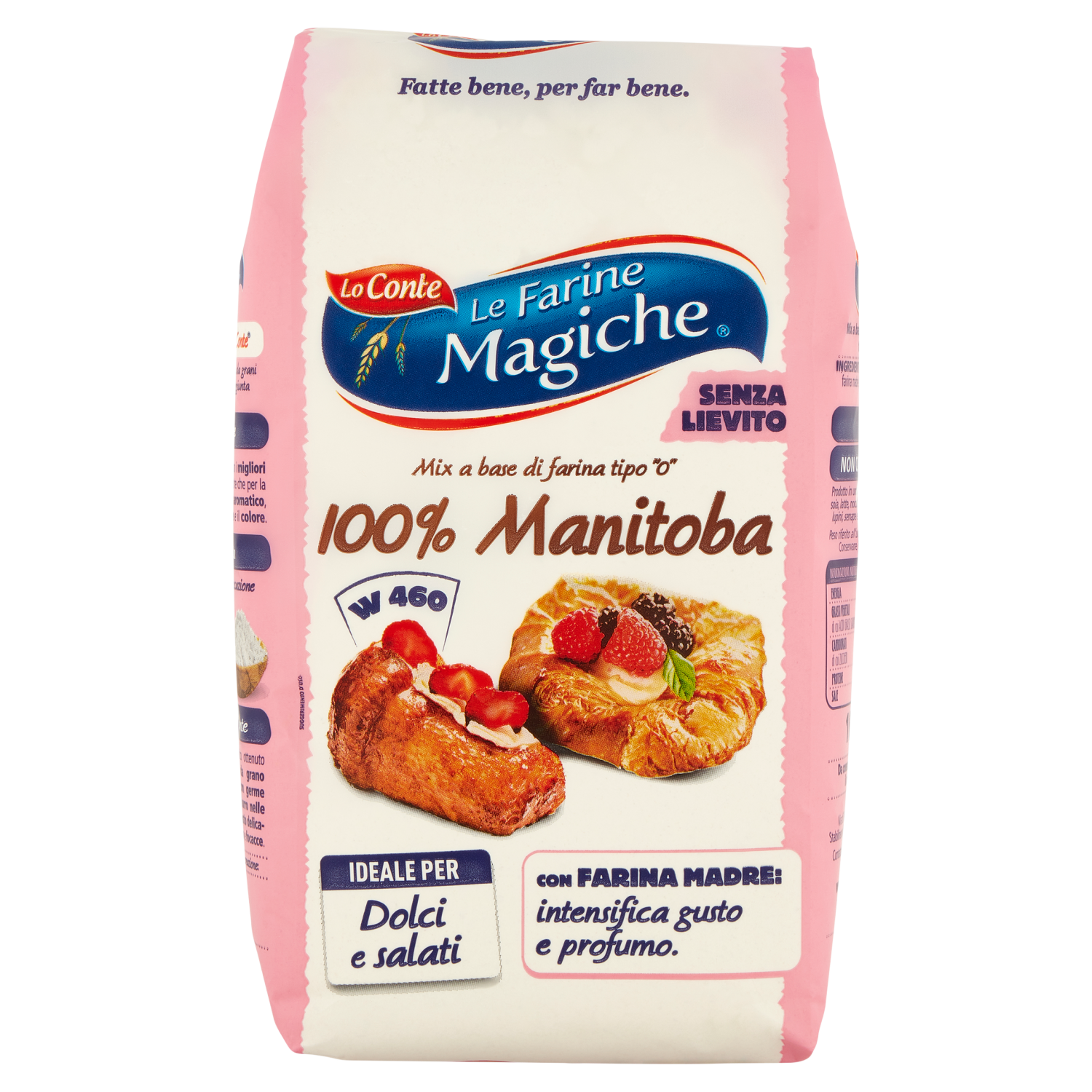I nostri consigli Utilizza solo 100% manitoba Per realizzare: pandoro, panettoni, babà, savarin, danubio. Utilizza 50% manitoba e 50% farina"00" Per realizzare: pasta sfoglia, bignè, zeppole, cannoli, sfogliate, danesi, croissant, cornetti, pan brioche, focacce e altro. Utilizza 20% manitoba e 80% farina"00" Per realizzare: pane, dolci, fette biscottate, pan carrè e tanto altro. Assorbimento +10% Questa farina assorbe il 10% in più di liquidi (acqua, latte, uova) previsti dalla tua ricetta. Profumo 10 Volte superiore rispetto alle altre farine. Lievitazione fino a 48h 100% Manitoba Le Farine Magiche garantisce la perfetta lievitazione a tutte le preparazioni che richiedono lievitazioni brevi (2/3 ore), Medie (fino a 6 ore), Lunghe (fino a 48 ore) con lievito di birra e lievito madre. 24 mesi di durata naturale Il metodo Superiore Lo Conte 100% Manitoba è una farina tostata da grani accuratamente selezionati, con aggiunta di Farina Madre. La nostra selezione Questa farina è realizzata con i migliori grani selezionati, oltre che per la forza, per il profilo aromatico, il gusto, il sapore e il colore. Tostatura specifica La farina è sottoposta a essiccazione specifica per. - Esaltarne il profilo aromatico - Prolungarne la scadenza (24 mesi) - Aumentarne l'assorbimento di acqua. W 460 Non contiene lievito Farina Madre Lo Conte Un ingrediente altamente aromatico ottenuto dalla fermentazione di farina da grano aromatico e acqua infusa con germe vitale. Intensifica il sapore del burro nelle creazioni dolci e conferisce un gusto delicato a pane, pizza e focacce. Dona ad ogni creazione: - Profumi - Leggerezza - Sapori Visita: www.farinamadre.eu
