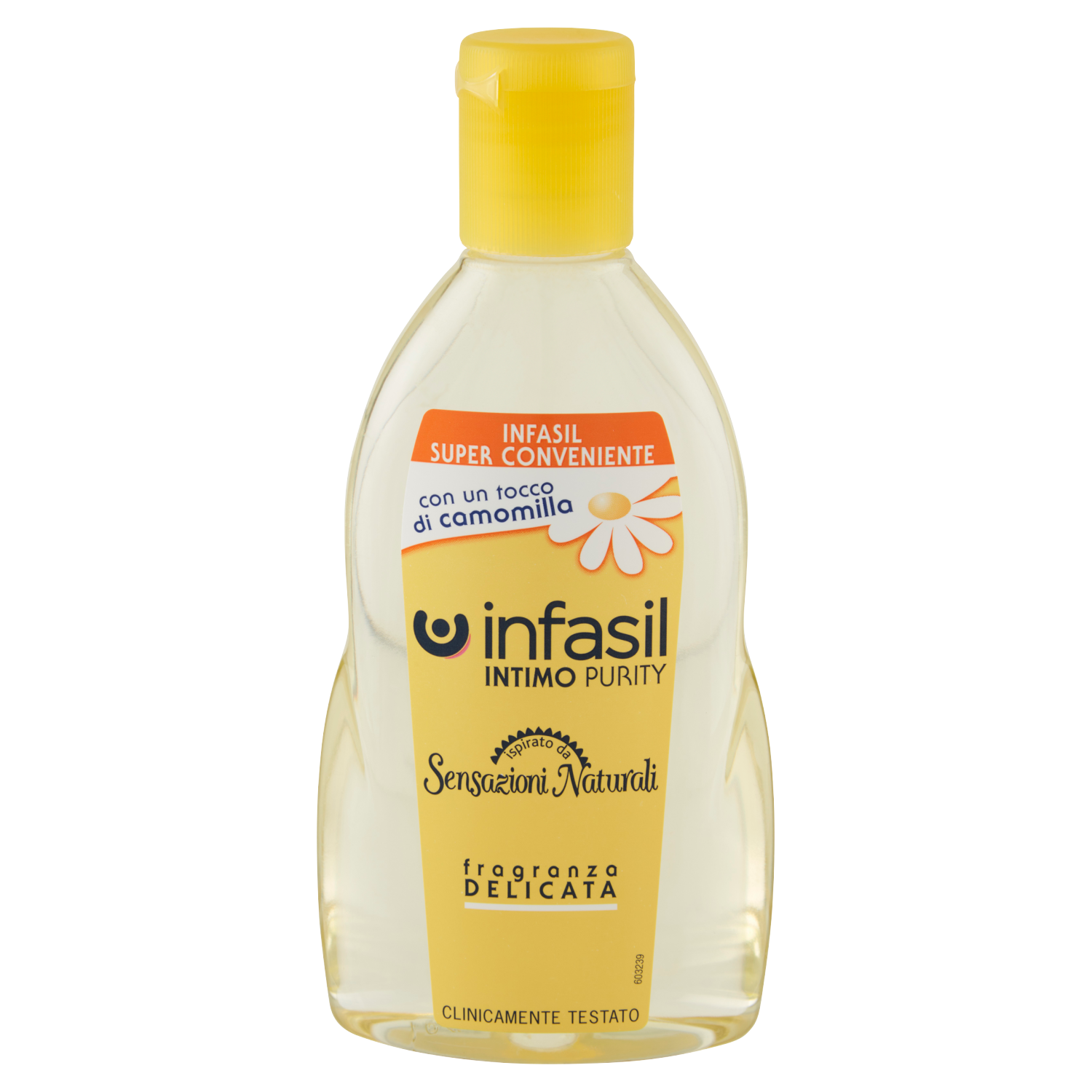 Infasil Intimo Ispirato da Sensazioni Naturali Tutta la sicurezza di Infasil con un tocco di camomilla Un'igiene intima completa per una sensazione di benessere naturale grazie a una formula esclusiva: - aiuta a proteggerti dalla formazione di cattivi odori rispettando il pH naturale della tua pelle - delicata profumazione - con un tocco di camomilla Proteggi il tuo benessere con la naturale sicurezza di Infasil.
