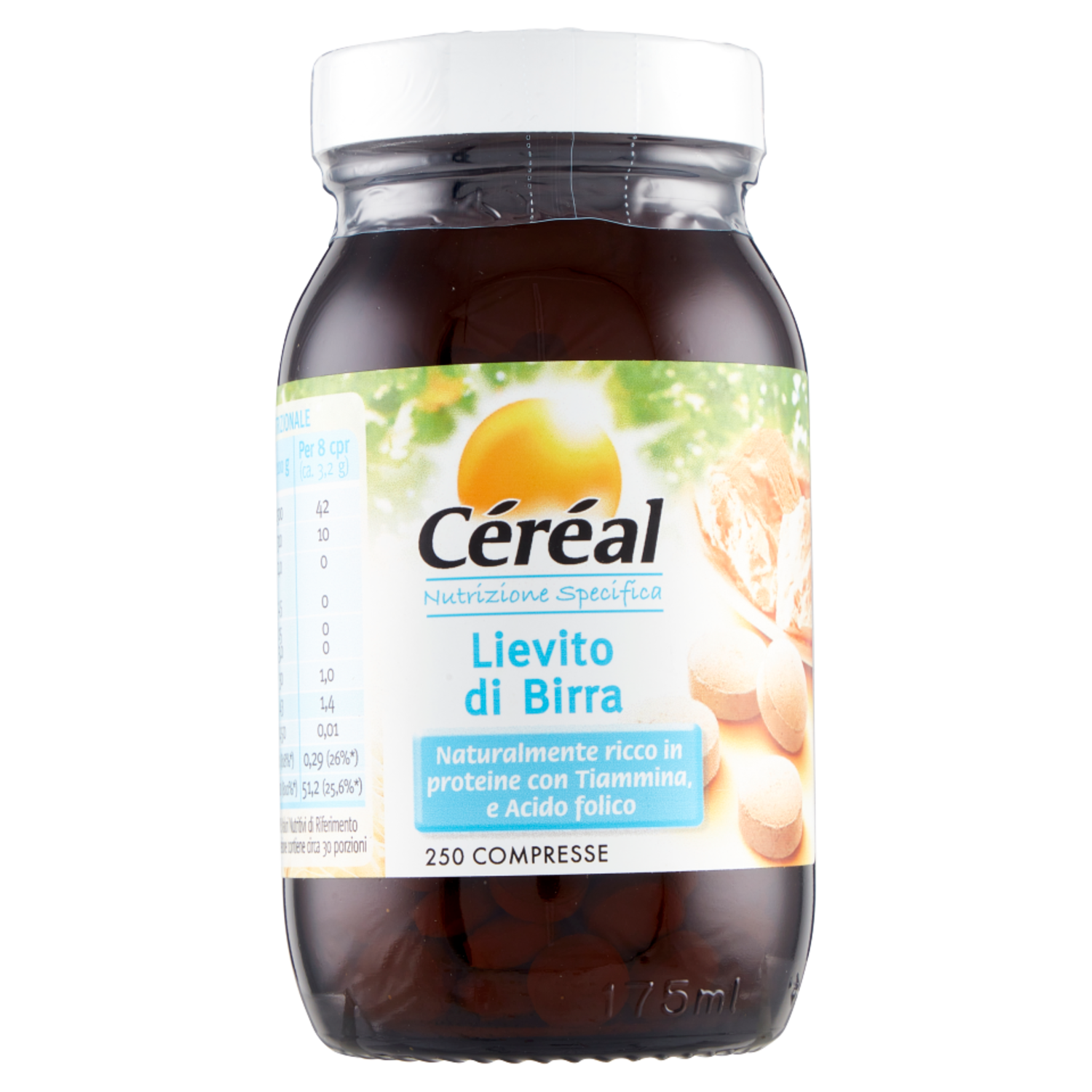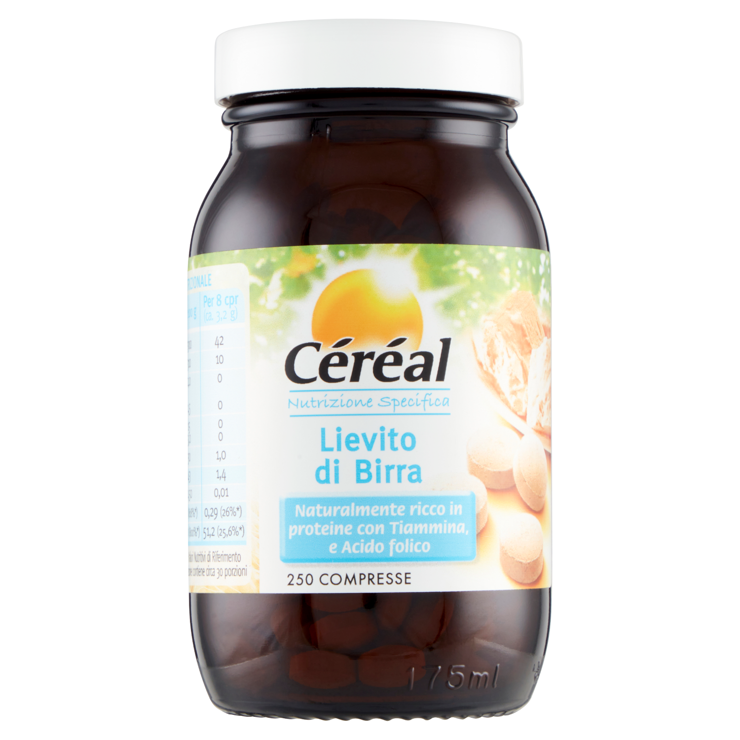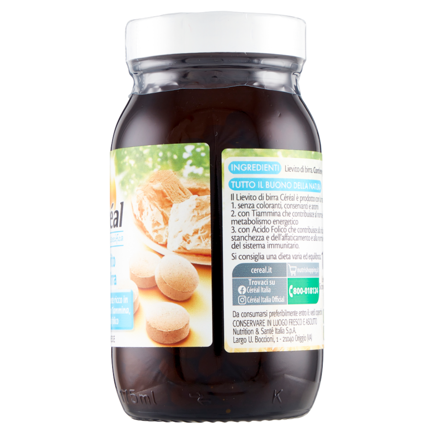 Tutto il buono della natura Il Lievito di birra Céréal è prodotto con la massima cura: 1. senza coloranti, conservanti e aromi 2. con Tiammina che contribuisce al normale metabolismo energetico 3. con Acido Folico che contribuisce alla riduzione della stanchezza e dell'affaticamento e alla normale funzione del sistema immunitario. Si consiglia una dieta varia ed equilibrata.