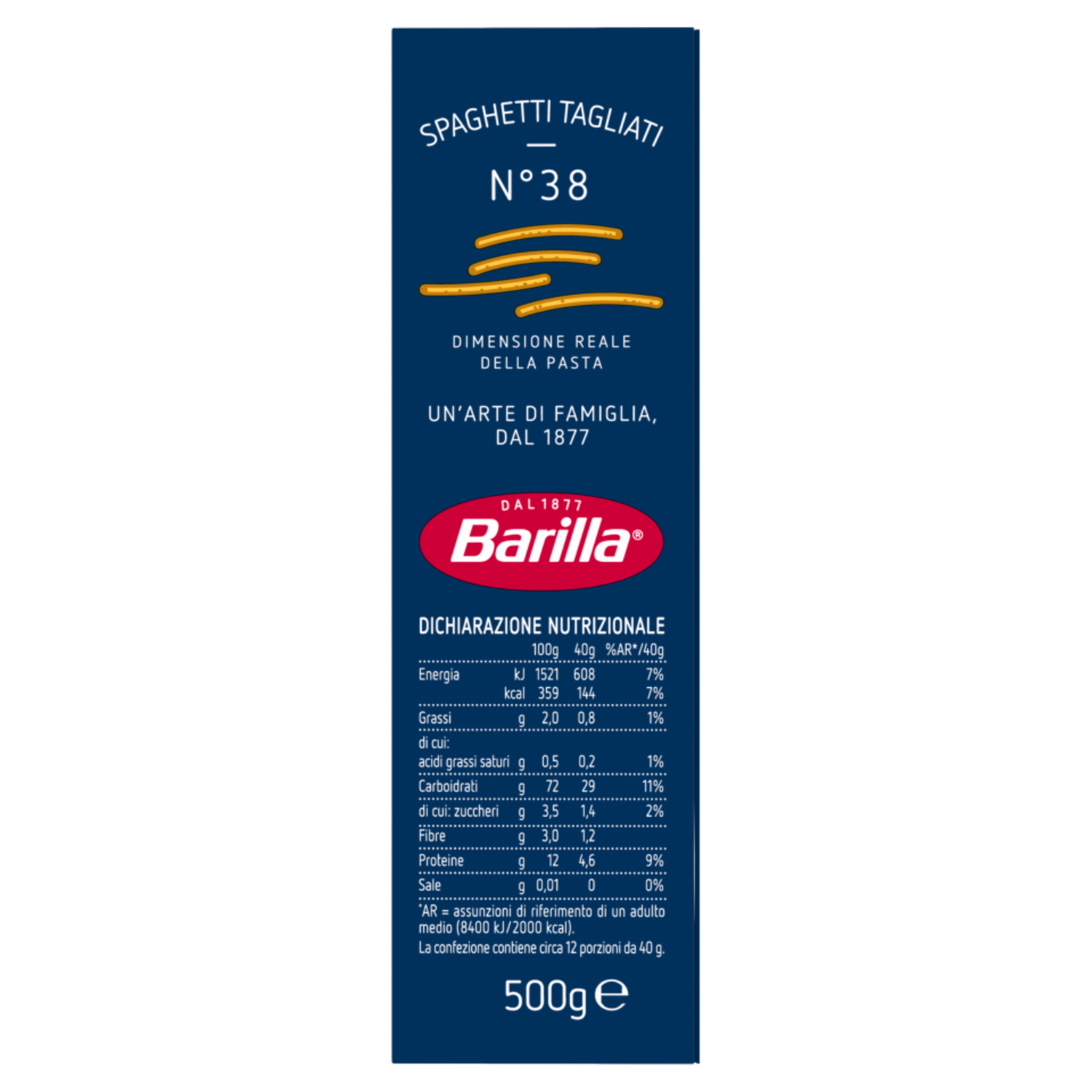 Barilla Dal 1877 Grani selezionati 100% italiani Siamo fieri di essere al fianco delle organizzazioni di 8.000 agricoltori d'Italia che coltivano grano duro di qualità per la nostra pasta. A Parma dal 1877 A Parma il buon cibo è tradizione ed eccellenza gastronomica, gioia di vivere e cultura: qui è dove siamo nati. Il domani è oggi La pasta Barilla la conosci da sempre: perciò abbiamo tolto la finestra trasparente, risparmiando 126.000 kg di plastica all'anno.* Un gesto d'amore Ogni giorno ci impegniamo a darti la nostra pasta migliore, sempre al dente, per far felice chi ami. *rimozione finestra dai Classici Barilla; valore calcolato sulle confezioni in cartoncino vendute nel 2020. Scopri di più su barilla.com/box. Per noi la qualità è una tradizione di famiglia dal 1877. www.barilla.it
