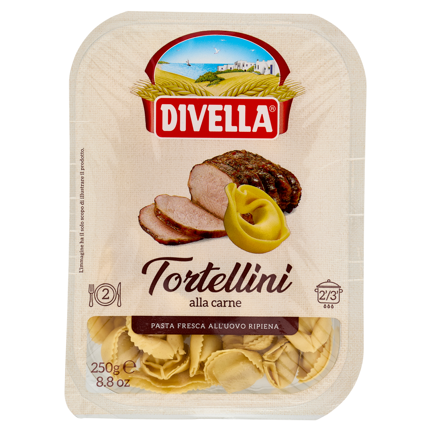 Ripieno: carne di bovino cotta 22% (7,6% sul totale) [carne di manzo 67%, pangrattato (farina di grano tenero, acqua, sale, lievito di birra, farina di frumento maltato), proteine vegetali, sale, vino (contiene solfiti), aceto, cipolla, rosmarino, aglio], mortadella (carne di suino, sale, destrosio, aromi), pangrattato (farina di grano tenero, acqua, sale, lievito di birra, farina di frumento maltato), olio di girasole, fibra vegetale, proteine del latte, Grana Padano (latte, sale, caglio, conservante: lisozima da uovo), salumi di bovino (carne bovina, sale, zuccheri, aromi naturali), siero di latte, aromi naturali, sale, aroma, noce moscata, pepe, rosmarino