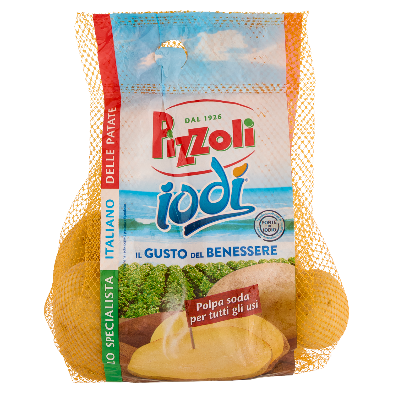 Polpa soda per tutti gli usi Una porzione di 200g di patate fresche Iodì apporta il 30% del valore nutritivo giornaliero di riferimento di iodio. Per saperne di più: www.pizzoli.it Una bontà tutta naturale Durante la coltivazione lo iodio viene assorbito in modo naturale dalla pianta della patata.