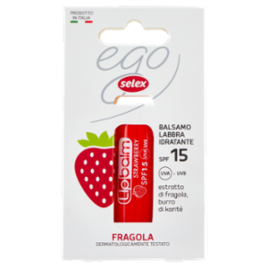Il balsamo per labbra Fragola Ego Selex è dermatologicamente testato. Contiene burro di karitè per un'azione idratante, estratto di fragola. Il fattore di protezione solare SPF 15 protegge le labbra durante l'esposizione ai raggi solari UVA e UVB. Lascia le labbra gradevolmente profumate grazie al suo aroma fruttato.