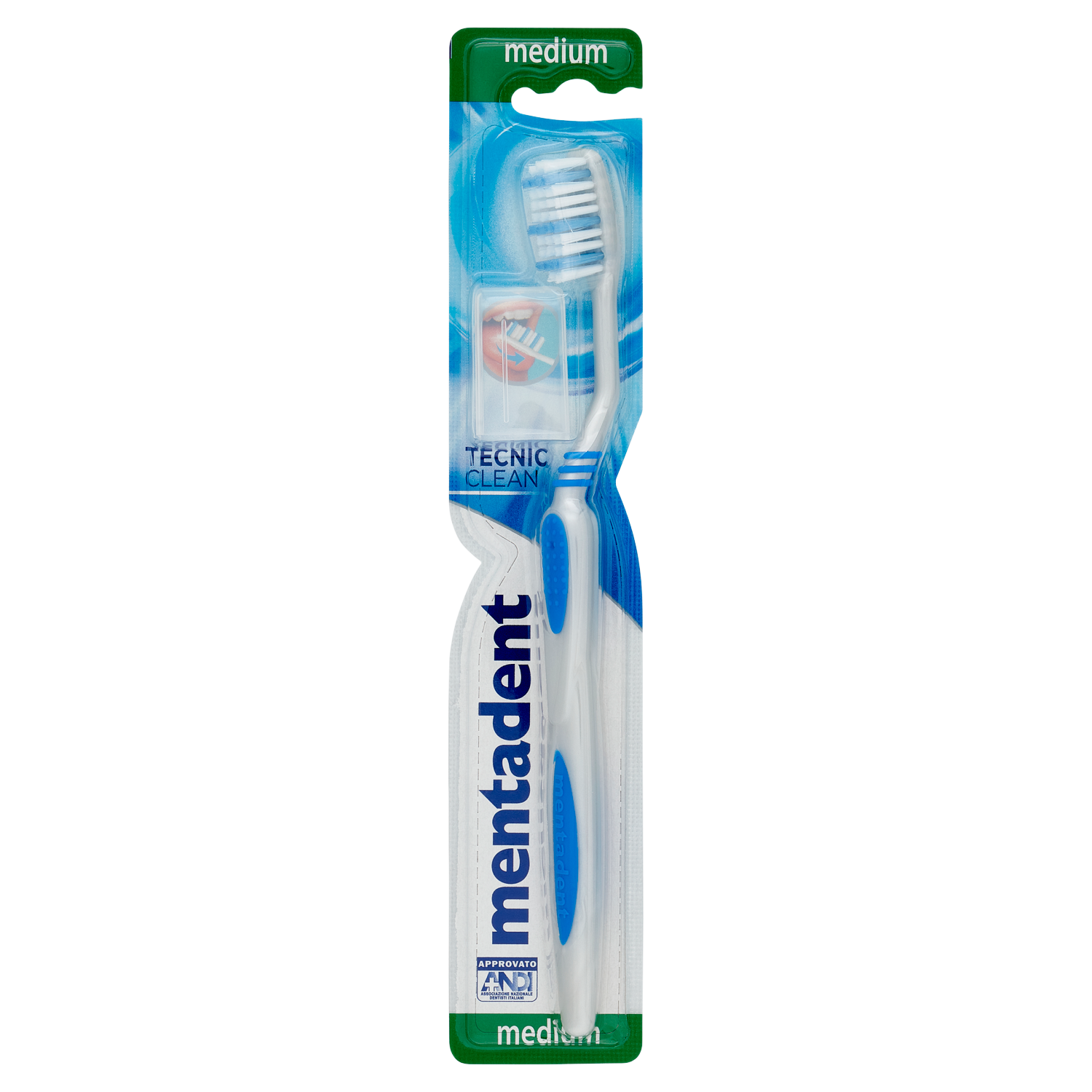 Come negli strumenti del dentista, il manico a tripla angolazione è stato sviluppato per permettere maggiore precisione nello spazzolamento e facilità nel raggiungere i denti posteriori. Con pulisci lingua ideato per rimuovere dalla lingua i batteri, una delle principali cause dell'alito cattivo. Approvato ANDI - Associazione Nazionale Dentisti Italiani L'A.N.D.I. riconosce che Mentadent Tecnic Clean risponde a standard qualitativi elevati. Abbinato ad un dentifricio al fluoro, se utilizzato correttamente e sostituito di frequente, è un valido strumento di igiene orale.
