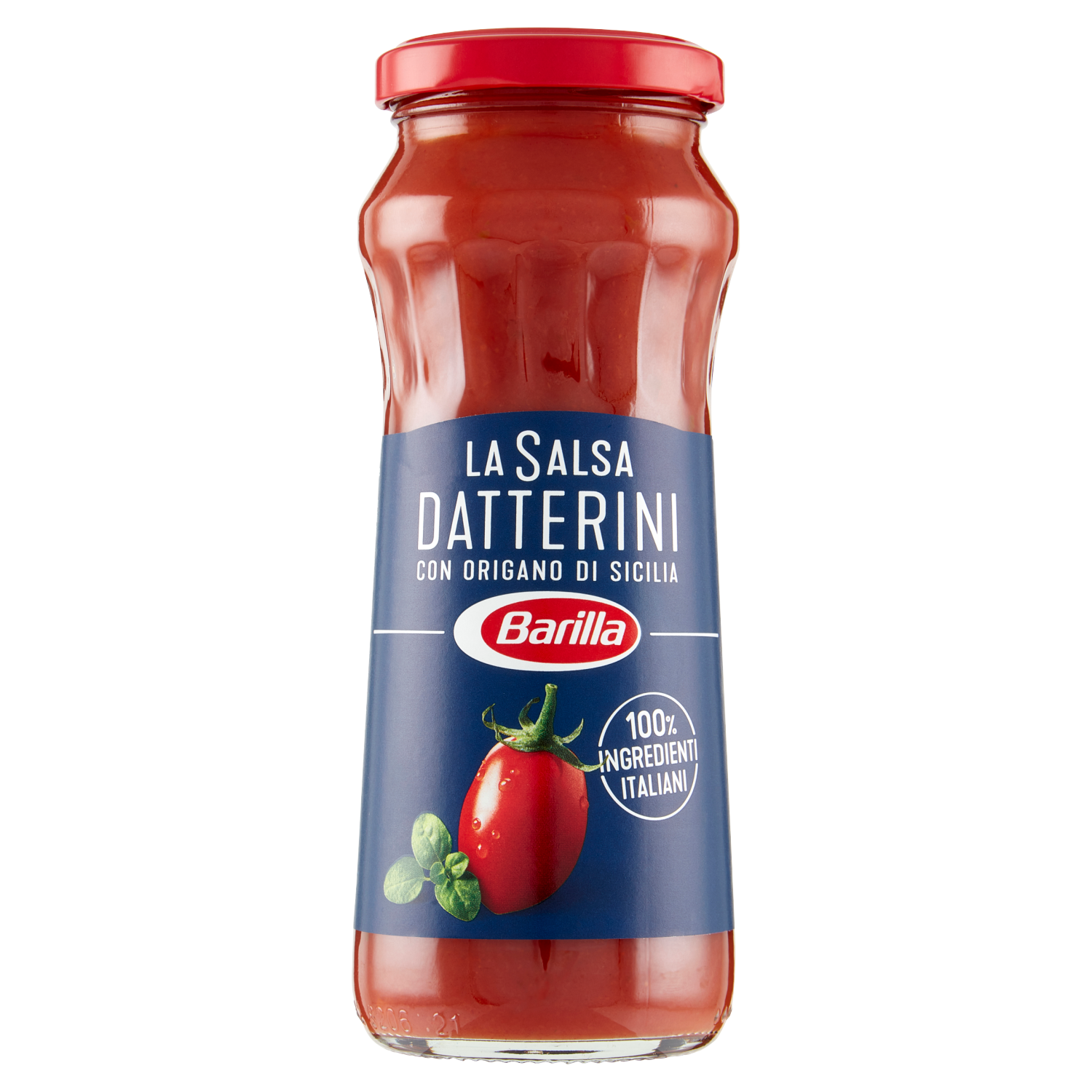 Salsa pronta con pomodori datterini, olio extra vergine di oliva (1,5%) e origano di Sicilia