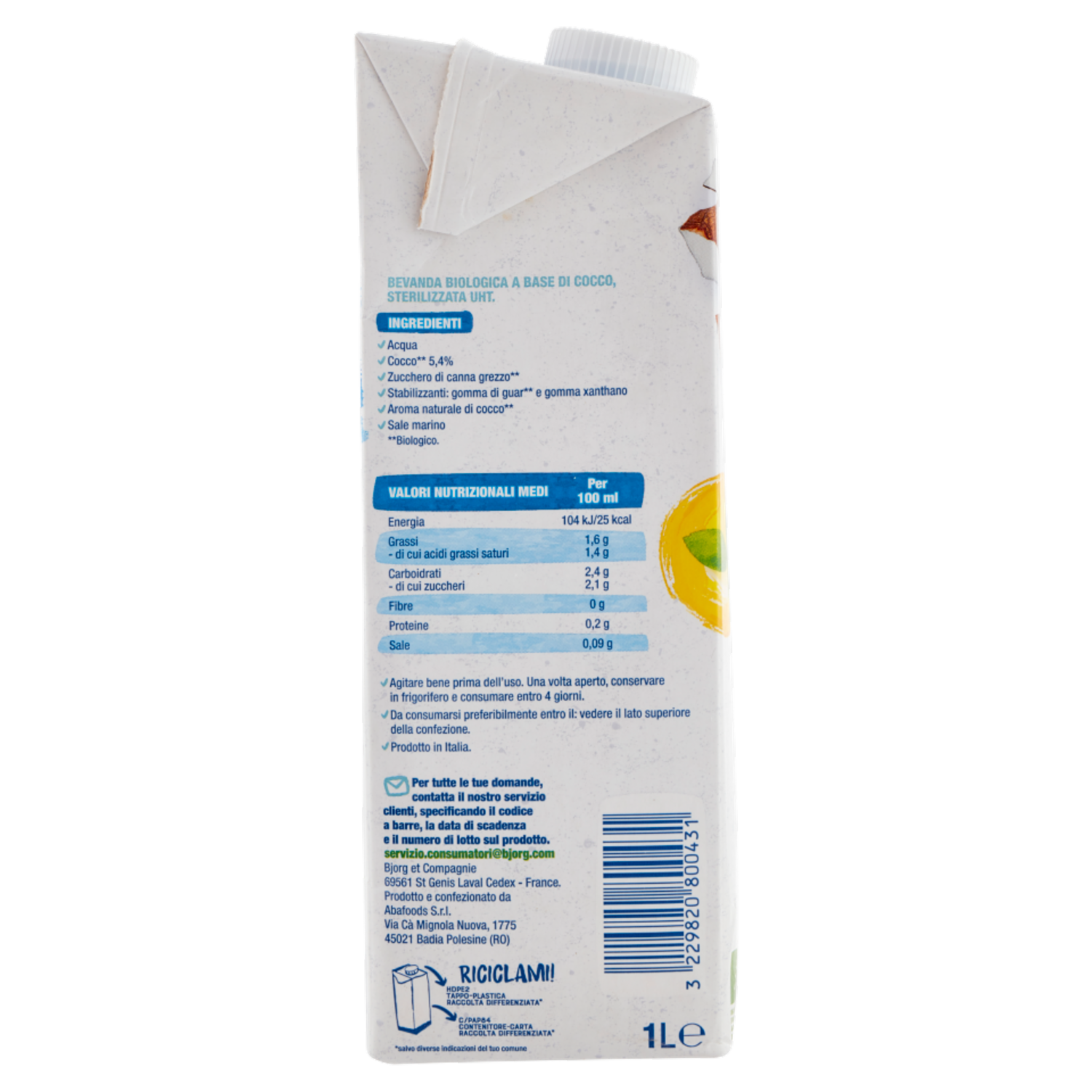 Bjorg et Compagnie 69561 St Genis Laval Cedex France Prodotto e confezionato da Abafoods S.r.l. Via Cà Mignola Nuova, 1775 45021 Badia Polesine (RO)