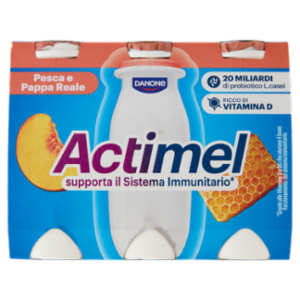 Fortedentro A volte la vita ci mette alla prova. Affrontiamola insieme! Sono Actimel, il tuo rinforzo quotidiano e da oggi sono ancora più forte dentro grazie ad una nuova formula arricchita! Oltre ai miei 20 miliardi di probiotico L.casei e la vitamina B6, da oggi sono ricco di vitamina D, per darti 1/3 dei valori nutritivi di riferimento in ogni bottiglietta. Non sottovalutarmi: sono piccolo fuori, ma forte dentro! - Con probiotico L.casei - Con vitamina B6 - Con 1/3 VNR*** di vitamina D - Senza coloranti & conservanti - Senza glutine - Carta e bottiglietta riciclabili Gustalo nell'ambito di una dieta varia ed equilibrata e di uno stile di vita sano. Ogni bottiglietta contiene il 33% dei VNR*** della vit. D e il 15% dei VNR*** della vit. B6. ***valori nutritivi di riferimento