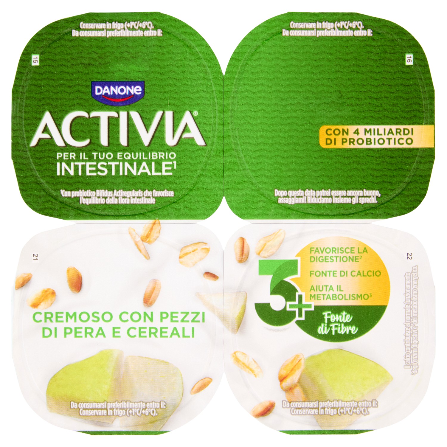 Activia contiene 4 miliardi di probiotico bifidus, che favoriscono l'equilibrio della flora intestinale e 100% ingredienti di origine naturale. 4 miliardi di probiotico bifidus equilibrio flora intestinale