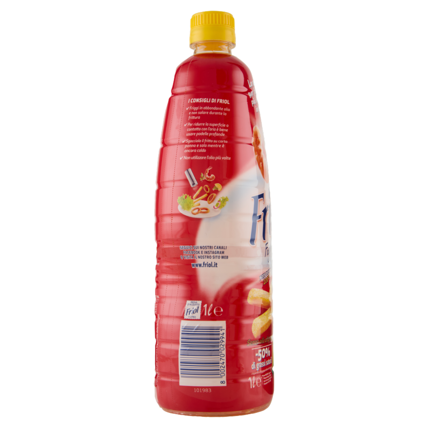 Friol è lo specialista del fritto sempre al tuo fianco per rendere le tue fritture asciutte, croccanti e leggere! I segreti di Friol Grazie alla mia formula speciale: - Resisto alle alte temperature, sino a 230°C, senza cattivi odori - Il mio fritto ha un sapore leggero e un aspetto dorato perché friggo croccante e asciutto - Sono ideale sia in padella sia in friggitrice