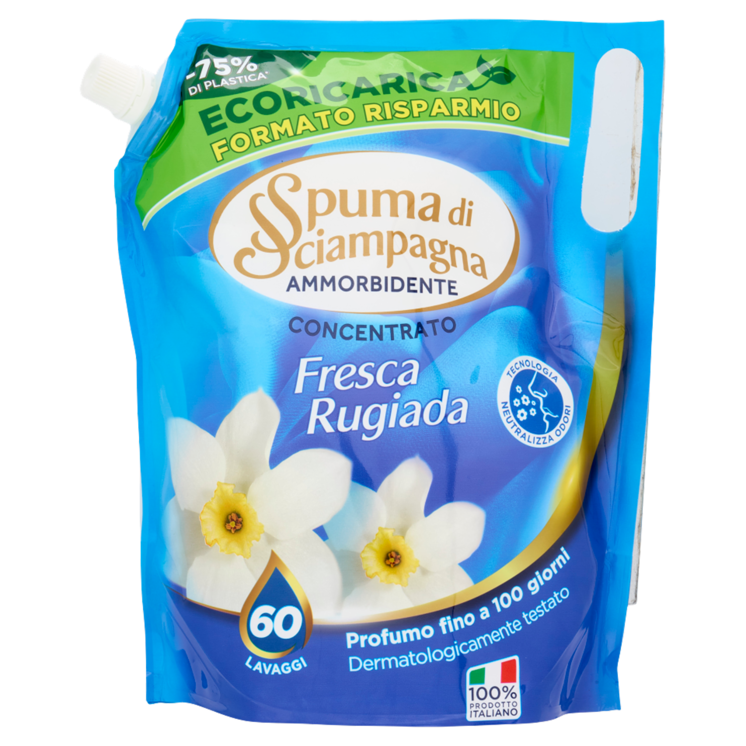 Più concentrato, ne basta meno!*** Dosaggio consigliato 1 Tappo 25 ml Lavatrice (4-5 kg) 20 ml + 10 ml Per un bucato ancora più profumato A mano 20 ml in 10 L d'acqua Per bucato maggiore o uguale a 6-7 kg aggiungere 25 ml ***Rispetto alla formula Spuma di Sciampagna regular (dosaggio 50 ml) Istruzioni Lavatrice: Versa il prodotto nella vaschetta dell'ammorbidente. A mano: Utilizza il prodotto all'ultimo risciacquo. In caso di mancanza del misurino utilizzare una tazzina da caffè Una tazzina da caffè = 75 ml Consigli d'uso Versa il prodotto direttamente nella vaschetta della lavatrice Travasa il prodotto in un flacone vuoto Non applicare mai il prodotto puro direttamente sui capi. Evitare di usare il prodotto sui capi etichettati come non infiammabili poiché potrebbe ridurre la non infiammabilità.