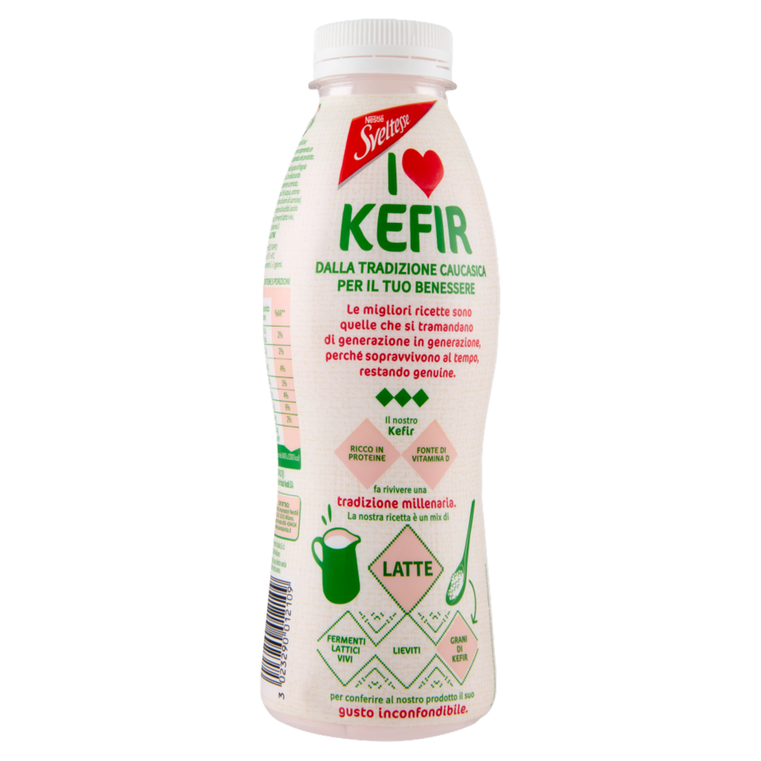 Dalla tradizione caucasica Le migliori ricette sono quelle che si tramandano di generazione in generazione, perché sopravvivono al tempo, restando genuine. Sveltesse I Love kefir fa rivivere la ricetta del kefir, una tradizione millenaria dei popoli caucasici tramandata e apprezzata per la sua bontà. Il Kefir Sveltesse è fatto con Latte + Fermenti lattici vivi, lieviti & grani di kefir Questi fermentano naturalmente e donano bontà ed un sapore unico alle nostre ricette. Senza zuccheri aggiunti* A basso contenuto di grassi Ricco di proteine Fonte di vitamina D *Contiene solo lattosio, lo zucchero naturalmente presente nel latte Consuma il Kefir nell'ambito di una dieta varia ed equilibrata e uno stile di vita sano. - Con fermenti lattici vivi lieviti e grani di kefir - Senza zuccheri aggiunti* *Contiene solo lattosio, lo zucchero naturalmente presente nel latte