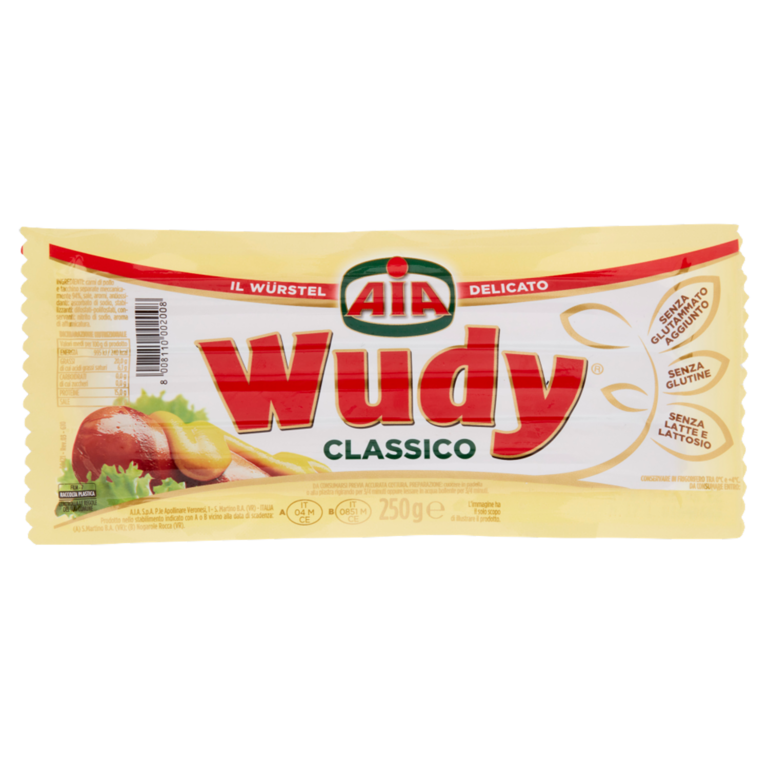 A.I.A. S.p.A. P.le Apollinare Veronesi, 1 S. Martino B.A. (VR) Italia Prodotto nello stabilimento indicato con A o B vicino alla data di scadenza: (A) S.Martino B.A. (VR) Bollo CE IT 04 M CE (B) Nogarole Rocca (VR) Bollo CE IT 0851 M CE
