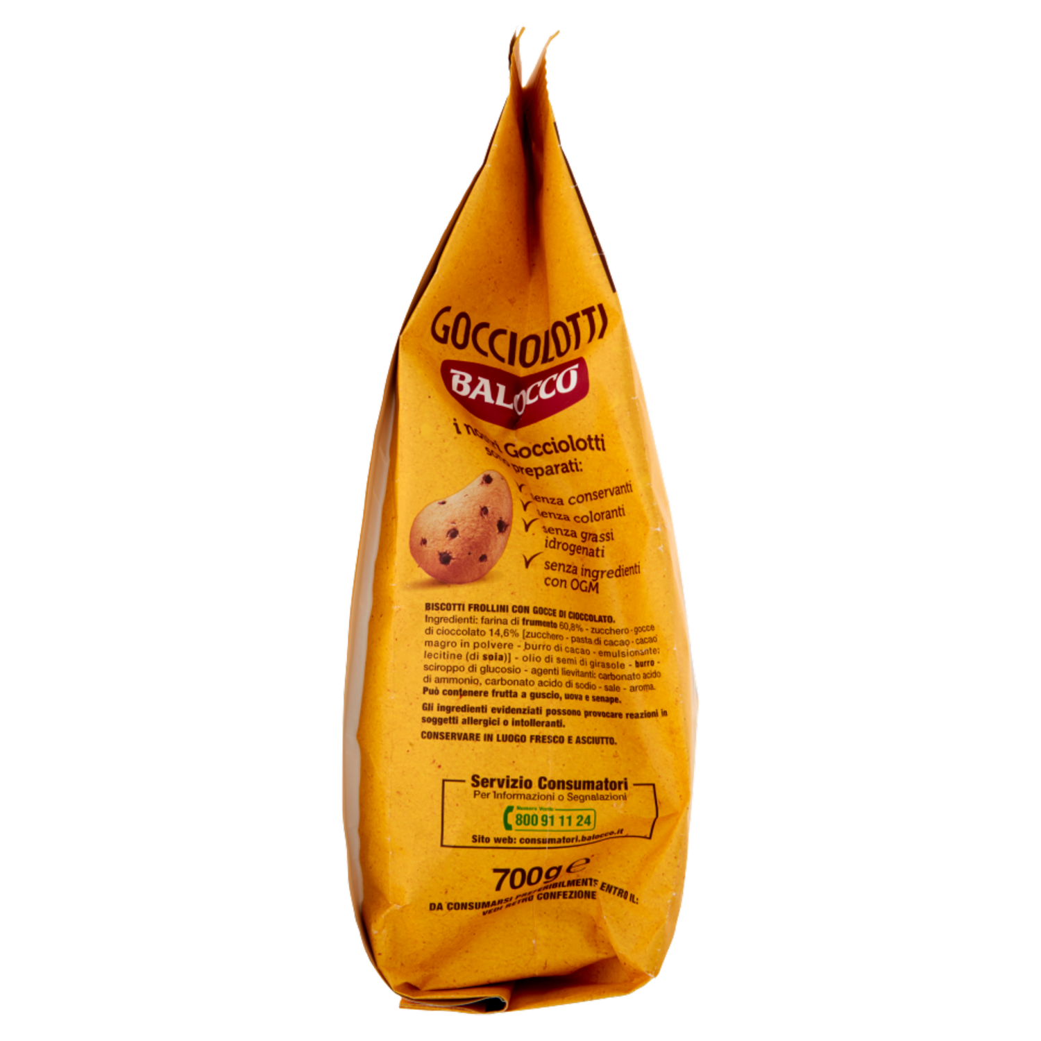 Dicono che ogni pasticciere abbia un segreto, noi ne abbiamo due. La nostra passione per l'arte pasticcera, tramandata da quattro generazioni, e ingredienti di primissima qualità. i Gocciolotti del Signor Balocco Meglio vederci chiaro se si tratta di maxi bontà! Le gocce di cioccolato dei miei Gocciolotti sono così golose che è amore al primo morso! i nostri Gocciolotti sono preparati: - senza conservanti - senza coloranti - senza grassi idrogenati - senza ingredienti con OGM Come sappiamo è sempre consigliato, oltre all'alimentazione equilibrata, fare movimento e praticare attività fisica.