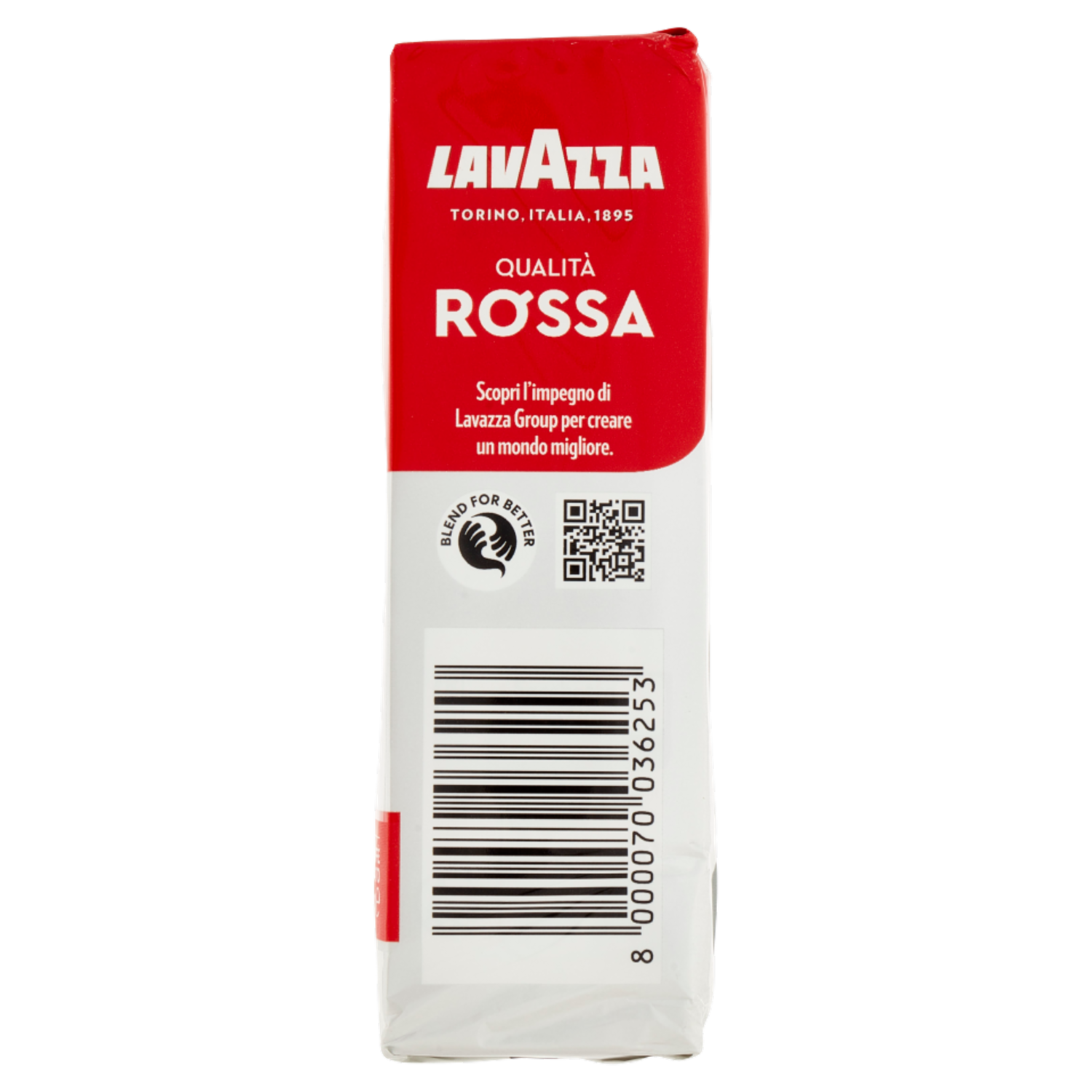 Il nostro Prodotto Lo riconosci dal colore. È il rosso della passione italiana per il caffè. Con la sua miscela di Arabica Brasiliani e Robusta Africani e del Sud Est asiatico, Qualità Rossa è il piacere del buon caffè che ti accompagna in ogni momento. Ricco e corposo con note di cioccolato Tostatura: media Corpositá: media