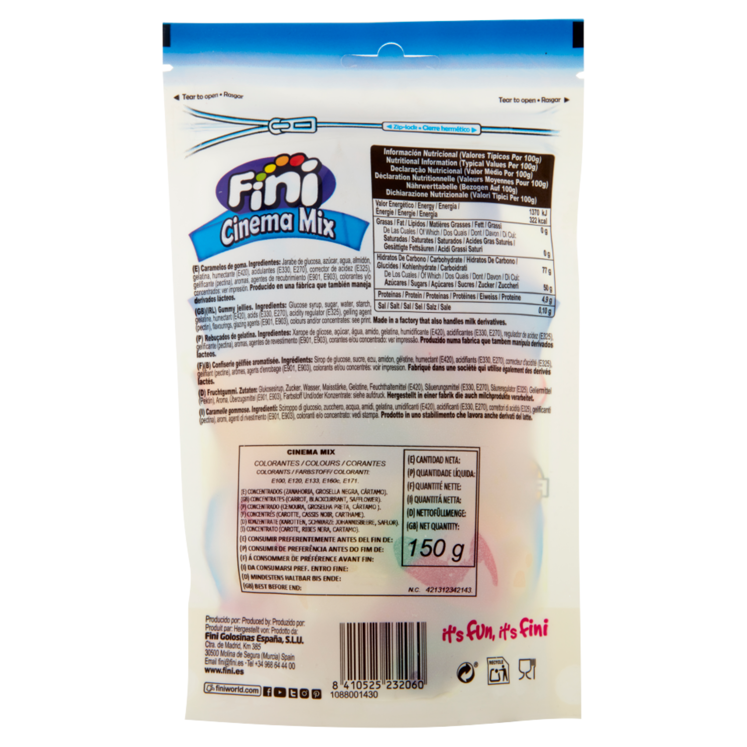 Prodotto da: Fini Golosinas España, S.L.U. Ctra. de Madrid, Km 385 30500 Molina de Segura (Murcia) Spain