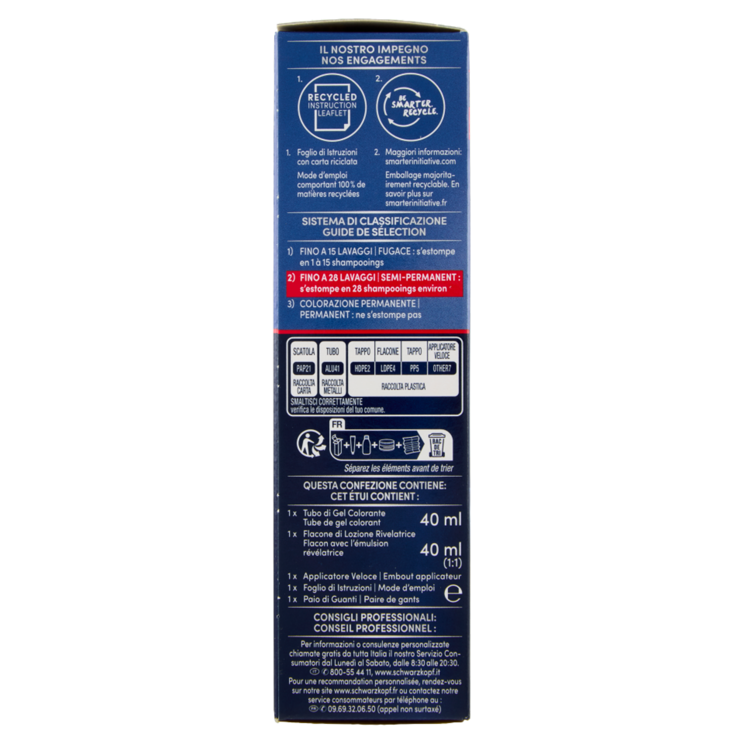 Miscela il gel colorante con l'emulsione rivelatrice e agita bene Usa il veloce applicatore per distribuire il gel colorante sui tuoi capelli e risciacqua dopo 5-10 minuti Consigli professionali Per informazioni o consulenze personalizzate chiamate gratis da tutta Italia. Da Lunedì a Sabato dalle 8:30 alle 20:30 Numero Verde 800-55 44 11 www.schwarzkopf.it