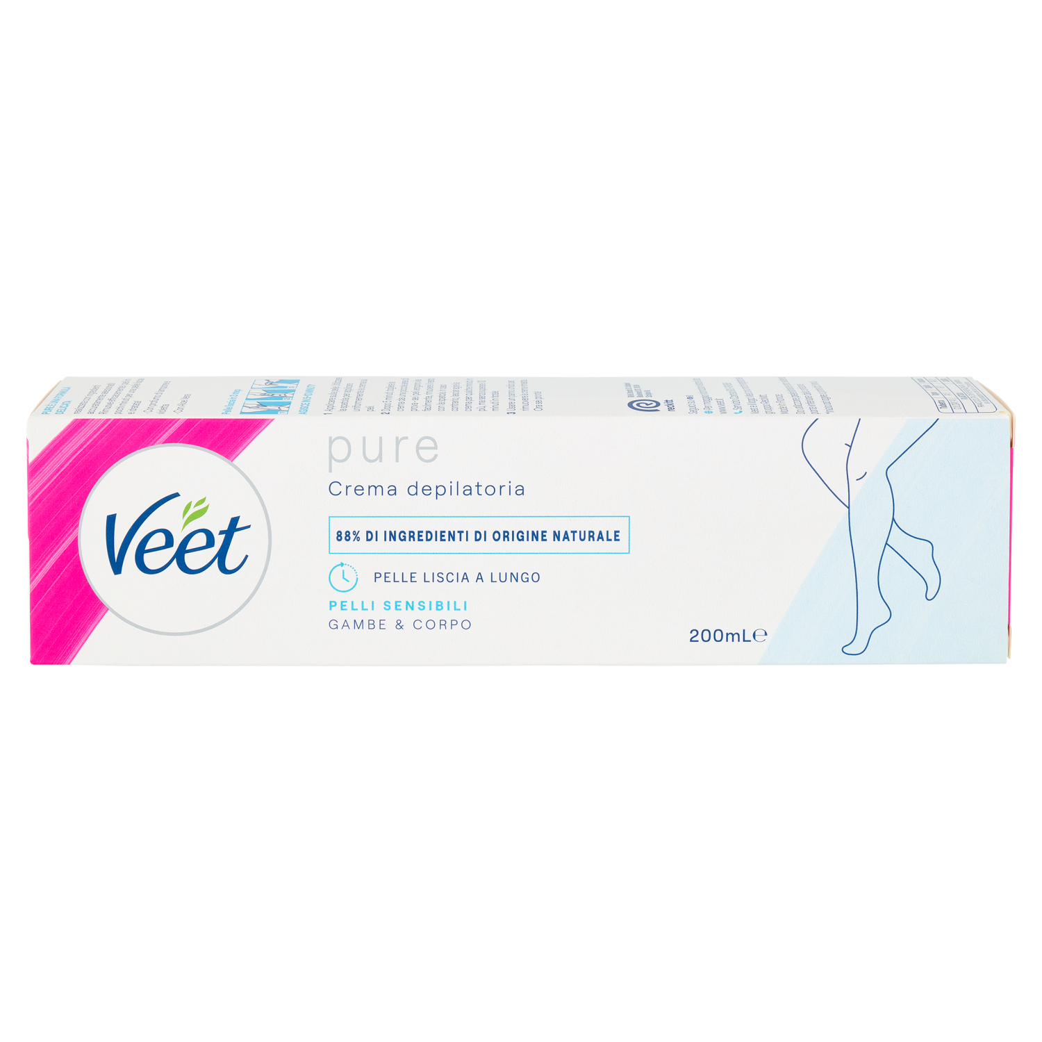 Scopri la crema Veet Pure: La nostra formula più pura, con un numero ridotto di ingredienti*, ideata per donarti una pelle liscia a lungo. Il nostro odore più puro: senza odore di ammoniaca. *con minor numero di ingredienti rispetto a tutte le precedenti formule di Creme Veet Dermatologicamente testato