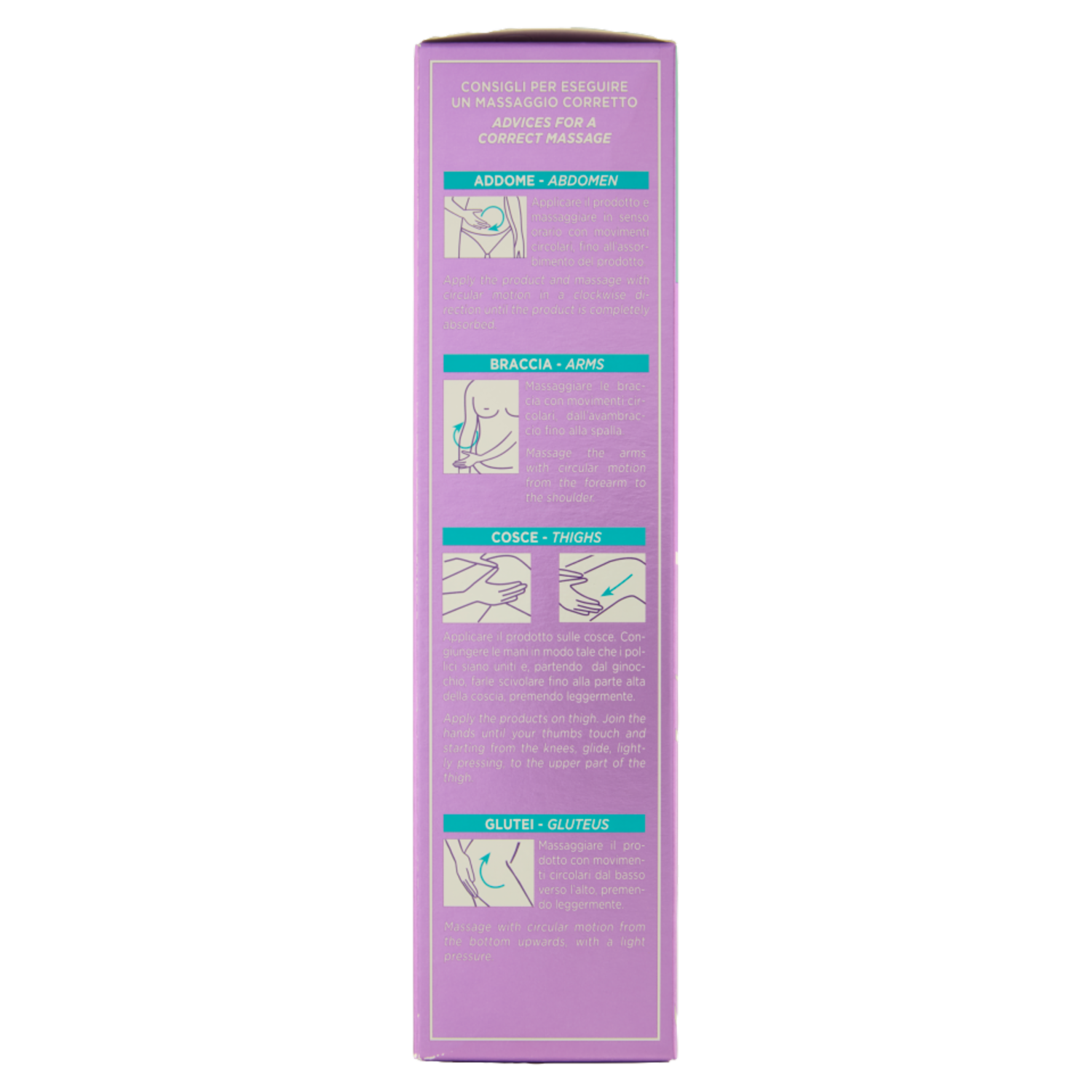 Consigli d'uso: applicare 2 volte al giorno, preferibilmente mattina e sera, sulle zone da trattare per almeno 4 settimane consecutive. Massaggiare con movimenti circolari dal basso verso l'alto fino a completo assorbimento per favorire anche l'azione drenante. Terminate le 4 settimane di trattamento continuare in base alle proprie esigenze ed ai risultati che si desidera ottenere. Consigli per eseguire un massaggio corretto Addome - Applicare il prodotto e massaggiare in senso orario con movimenti circolari, fino a come pleto assorbimento. Braccia - Massaggiare le braccia con movimenti circolari, dall'avambraccio fino alla spalla. Cosce - Applicare il prodotto sulle cosce. Congiungere le mani in modo tale che i pollici siano uniti e, partendo dal ginocchio, farle scivolare fino alla parte alta della coscia, premendo leggermente. Glutei - Massaggiare il prodotto con movimenti circolari dal basso verso l'alto, premendo leggermente.