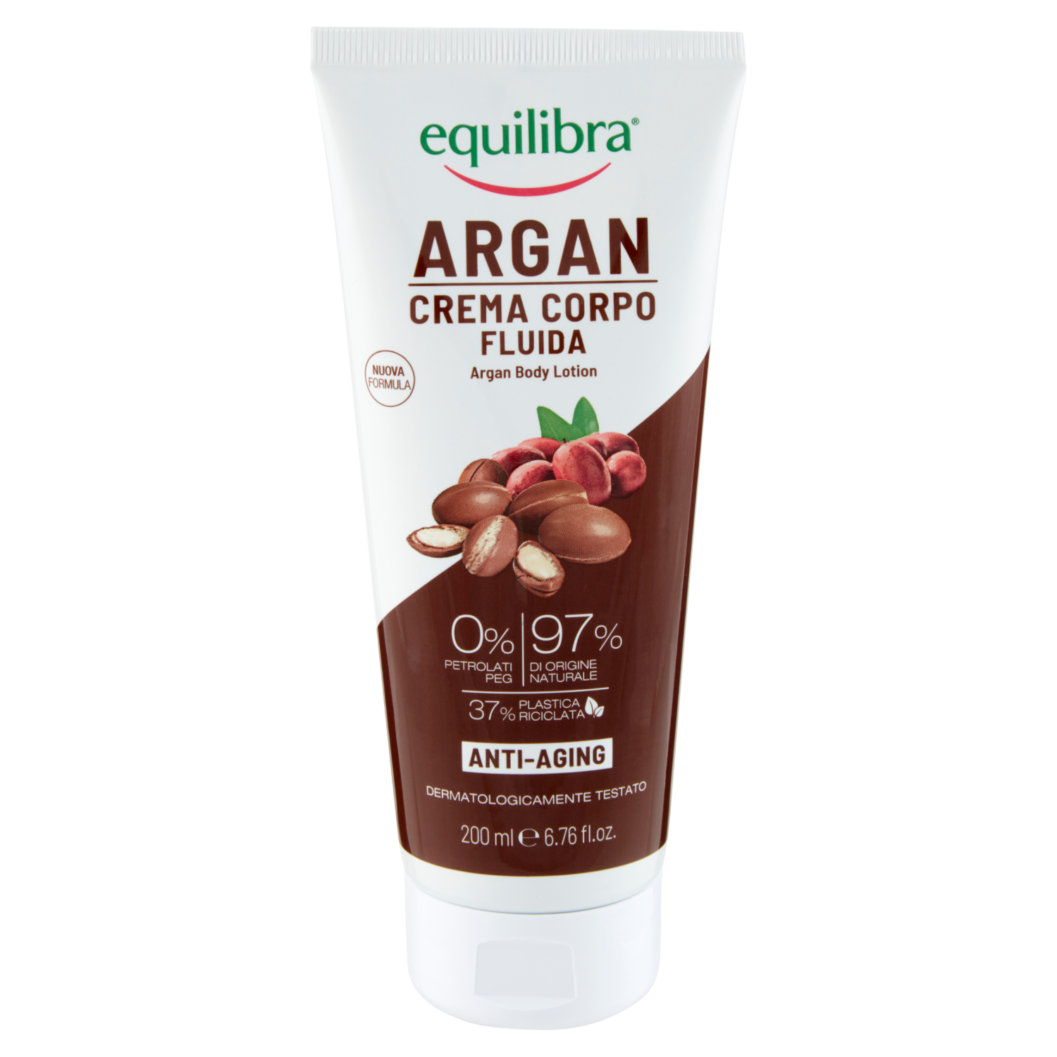 Equilibra Argan Crema Corpo Fluida è una crema delicatamente profumata, che nutre e protegge la pelle del corpo senza ungere. Utilizzata dopo il bagno o la doccia, restituisce morbidezza e protezione. Ideale anche in caso di pelle secca o spenta. La sua nuova formula, priva di alcol e petrolati, assicura ogni giorno delicatezza e comfort. Cosa contiene: Olio di Argan: ad azione levigante e anti-aging; Olio di Jojoba: rigenerante, anti-aging; Vitamina E: antiossidante; Emulsionanti di Origine Naturale: rispettano la fisiologia del film idrolipidico. Senza: parabeni - petrolati - PEG - siliconi - alcol Delicatamente profumata Adatta a pelli sensibili Dermatologicamente testato Made in Italy - Prodotto in Italia 97% Ingredienti naturali Senza: parabeni - petrolati - siliconi - PEG