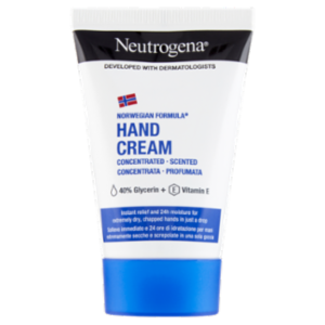 Neutrogena Formula Norvegese Crema Mani Concentrata Profumata. Una goccia della nostra formula concentrata con glicerina al 40% e vitamina E rigenera e ripara istantaneamente le mani fornendo un'idratazione duratura per 24 ore e una protezione della barriera cutanea clinicamente testata. Adatta per pelle sensibile. Tubo riciclabile* realizzato con il 50% di plastica riciclata (*ove esistono impianti di riciclaggio).