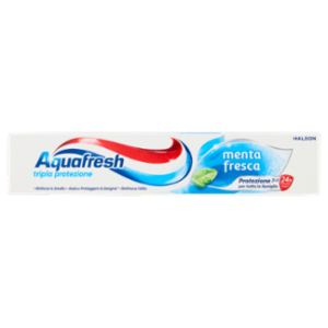 Aquafresh Tripla Protezione Menta Fresca ha una formula clinicamente testata che offre protezione 3in1 per tutta la famiglia: rinforza lo smalto creando uno scudo protettivo** per i denti, aiuta a proteggere le gengive* e rinfresca l'alito. Quando ti lavi i denti, i minerali attivi di Aquafresh Tripla Protezione Menta Fresca vengono assorbiti dai tuoi denti, rinforzandoli. Questo crea uno scudo protettivo che aiuta a bloccare l'attacco degli acidi derivanti dagli zuccheri, per tutto il giorno*. - Rinforza lo Smalto - Aiuta a Proteggere le Gengive* - Rinfresca l'Alito *Spazzolando i denti due volte al giorno. **Protegge lo smalto grazie al fluoruro, spazzolando i denti due volte al giorno.