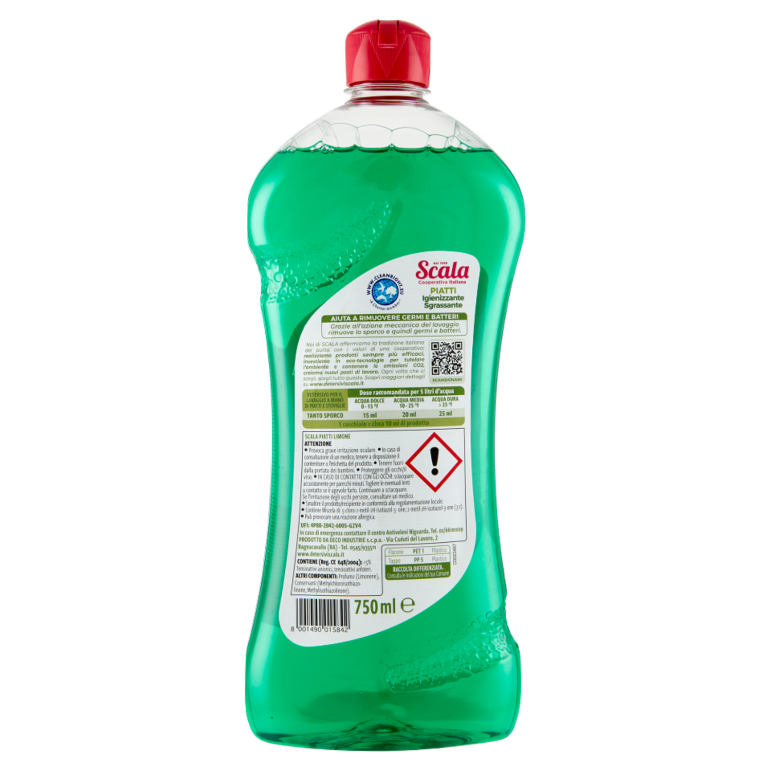 Scala piatti limone ATTENZIONE - Provoca grave irritazione oculare. - In caso di consultazione di un medico, tenere a disposizione il contenitore o l'etichetta del prodotto. - Tenere fuori dalla portata dei bambini. - Proteggere gli occhi/il viso. - IN CASO DI CONTATTO CON GLI OCCHI: sciacquare accuratamente per parecchi minuti. Togliere le eventuali lenti a contatto se è agevole farlo. Continuare a sciacquare. Se l'irritazione degli occhi persiste, consultare un medico. - Smaltire il prodotto/recipiente in conformità alla regolamentazione locale. - Contiene Miscela di: 5-cloro-2metil-2H-isotiazol-3-one, 2-metil-2H-isotiazol-3-one (3:1). - Può provocare una reazione allergica. UFI: 4P80-2042-6005-G2V4 In caso di emergenza contattare il centro Antiveleni Niguarda. Tel. 02/66101029