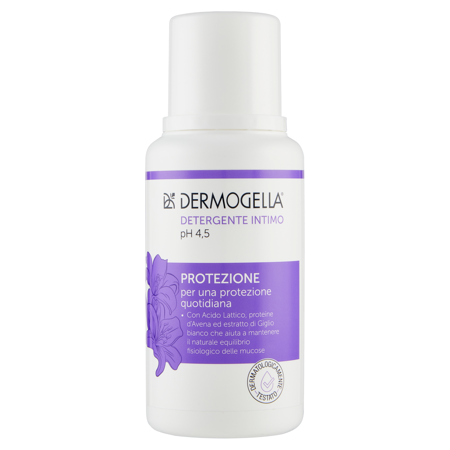 Dermogella Intimo Protezione aiuta a favorire una protezione quotidiana dell'area vulvare, grazie alla presenza di acido lattico che aiuta a mantenere un pH fisiologico, contribuendo a rinforzare i naturali meccanismi di difesa dell'ecosistema vulvo-vaginale. L'estratto di giglio bianco, con un delicato effetto rinfrescante e addolcente, contribuisce a donare una fresca sensazione di pulito, mentre le proteine dell'avena hanno un'azione idratante, emolliente e lenitiva. Il suo pH 4,5 rispetta l'equilibrio fisiologico dell'area genitale esterna.