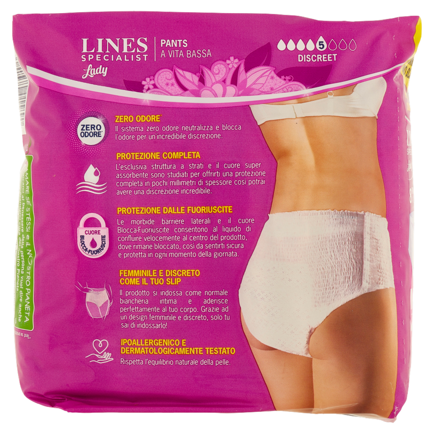 Amare Sé Stessi e il Nostro Pianeta Dedicarci al benessere della persona vuol dire anche prenderci cura del nostro Pianeta. Scopri il nostro impegno su: www.lines-specialist.it La gamma Lady Proteggislip Normal - Assorbenza 3 su 4 Long - Assorbenza 4 su 4 Assorbenti Mini - Assorbenza 2 su 8 Mini Plus - Assorbenza 3 su 8 Normal - Assorbenza 4 su 8 Extra - Assorbenza 5 su 8 Maxi - Assorbenza 7 su 8 Pants Discreet - Assorbenza 5 su 8 Plus - Assorbenza 6 su 8