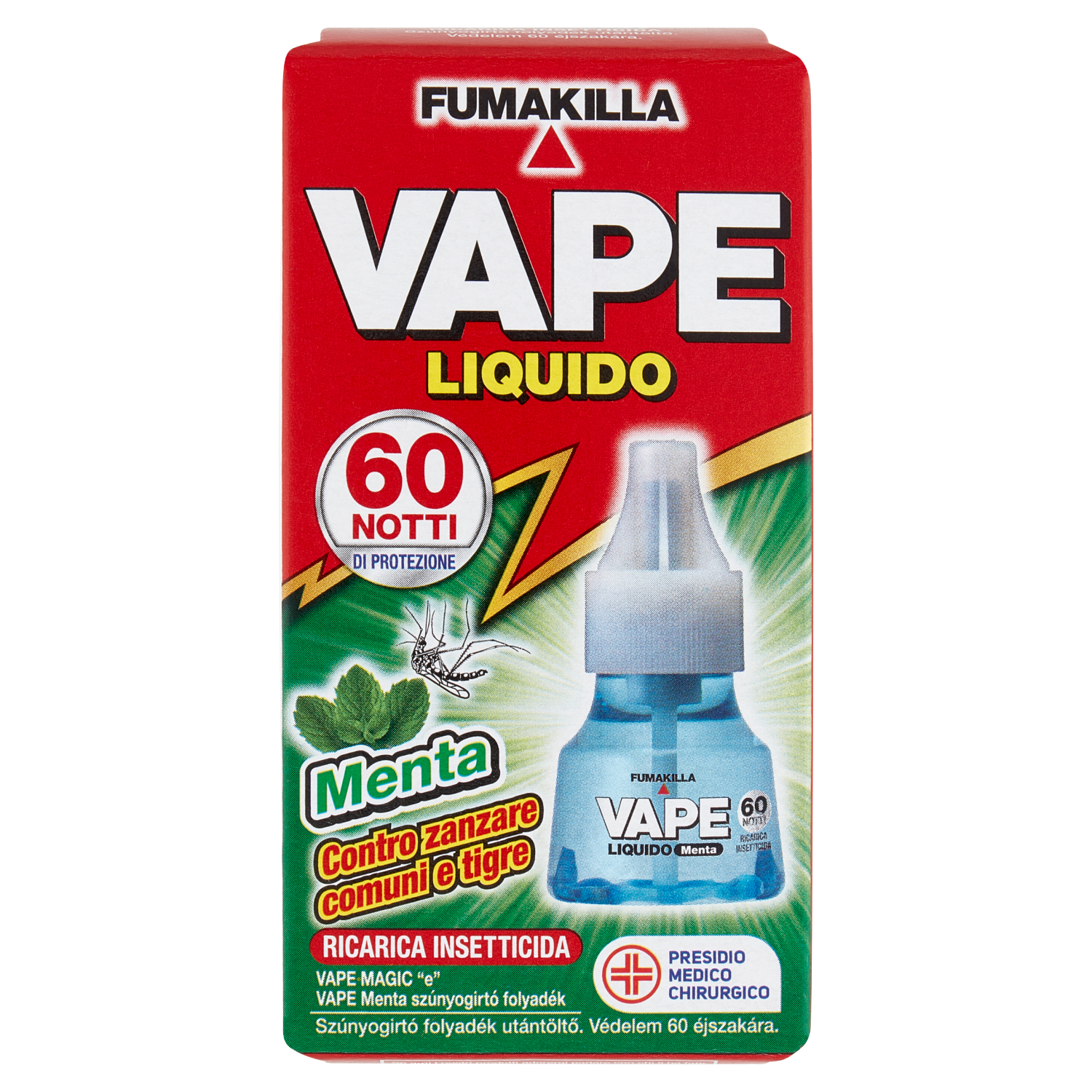 Vape Magic "e" contro le zanzare comuni e tigre (Aedes aegypti - Culex pipiens - Aedes albopictus). L'elettroemanatore Vape con la sua ricarica originale è in grado di funzionare con la massima efficacia per 60 notti.
