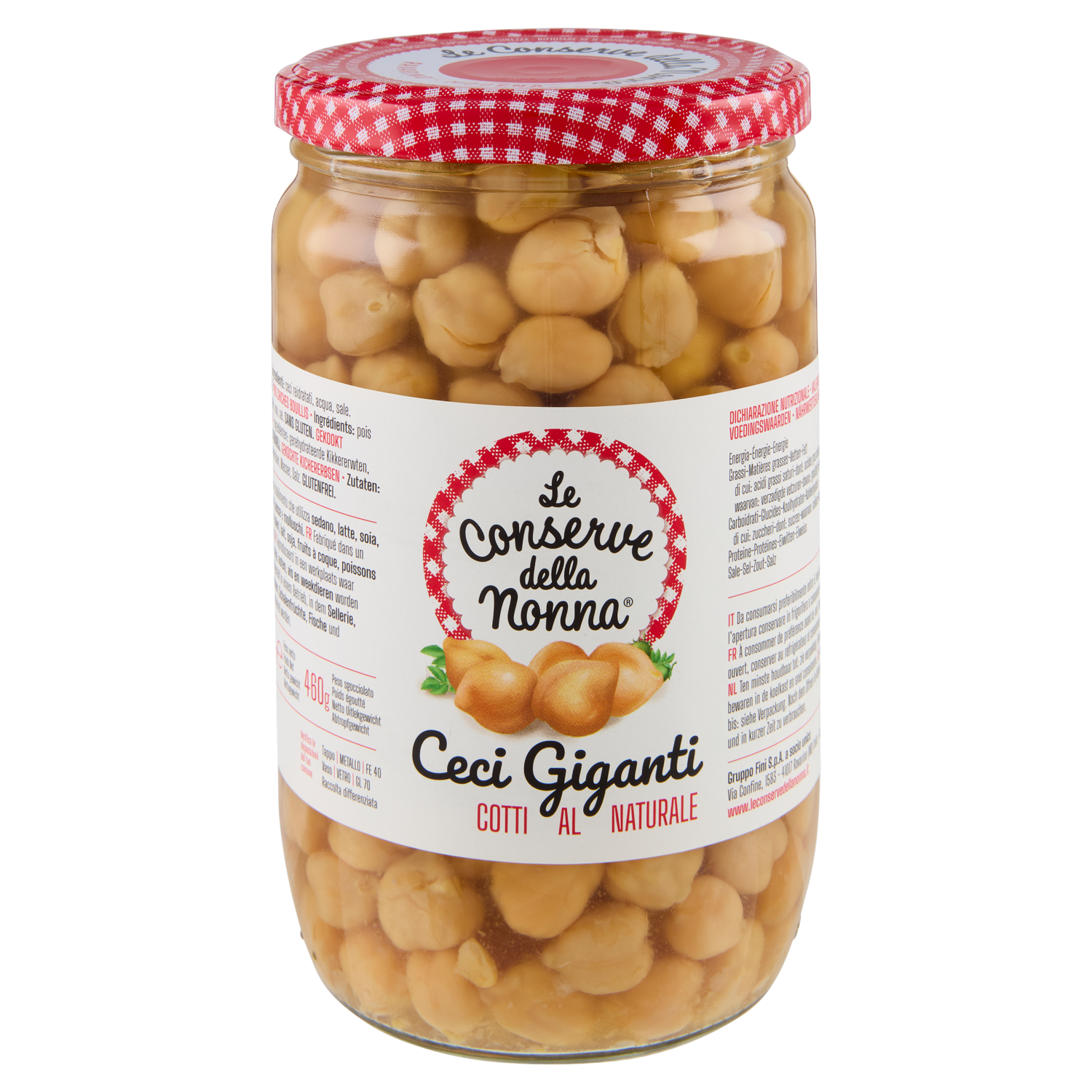 Ceci gustosi e croccanti, cotti al naturale senza conservanti né aromi. Ric chi di proteine vegetali. Pronti all'uso per minestre, zuppe o per arricc hire gustose insalate.