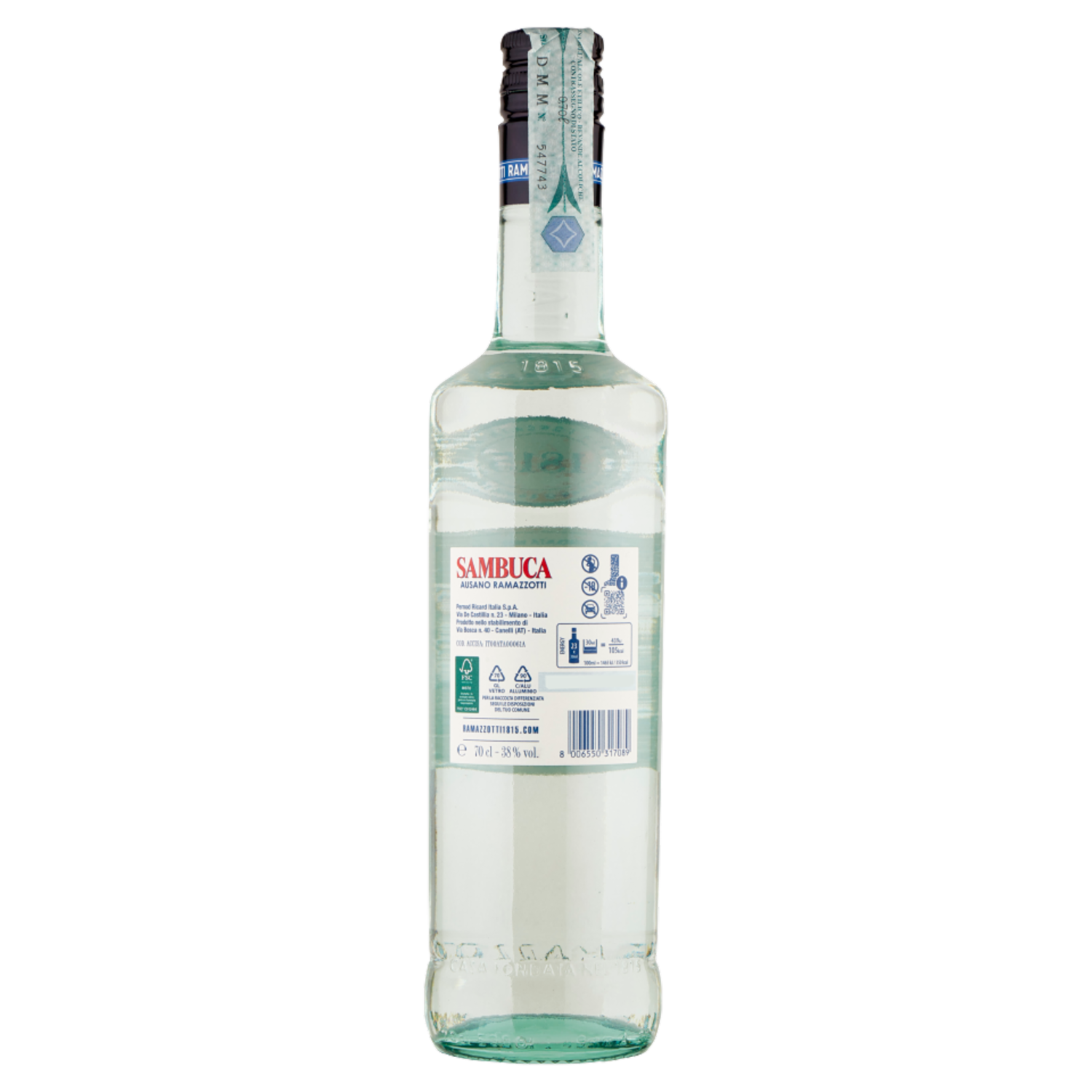 Bere una Sambuca Ramazzotti significa assaporare la bellezza di momenti spo ntanei e autentici, momenti che Ausano Ramazzotti voleva celebrare già nel 1815, quando fondò l'omonima casa. L'inconfondibile aroma dell'anice stella to e delle erbe accuratamente selezionate lo rendono un prodotto dal gusto deciso e avvolgente. Sambuca Ramazzotti è il compagno perfetto per tutti qu ei momenti che ti faranno dire: Bella la vita! Provala con la mosca, ghiacc iata, flambè o miscelata. Scopri di più su ramazzotti1815.com Senza glutin e