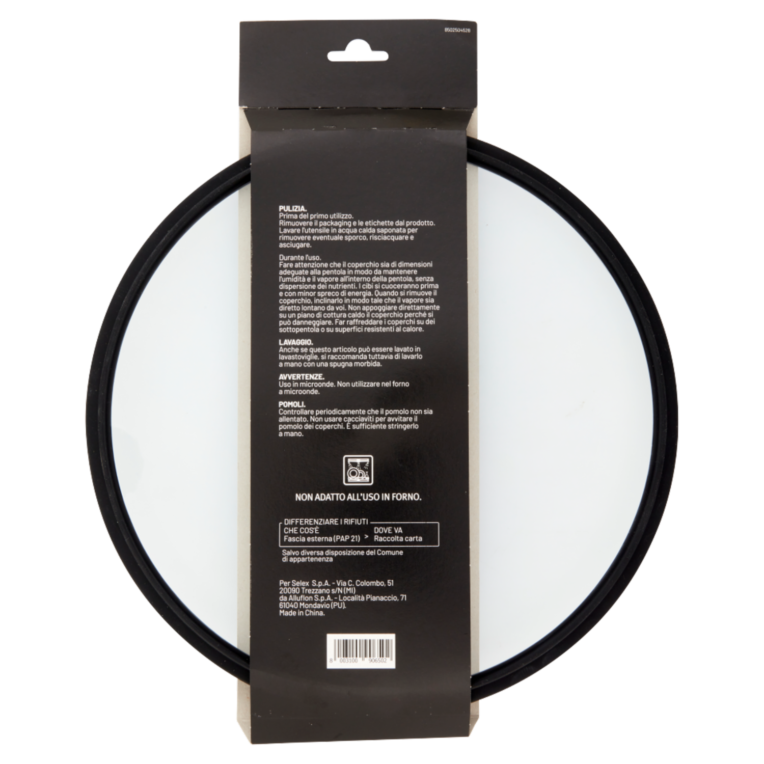 Pulizia. Prima del primo utilizzo. Rimuovere il packaging e le etichette del prodotto. Lavare l'utensile in acqua calda saponata per rimuovere eventuale sporco, risciacquare e asciugare. Durante l'uso. Fare attenzione che il coperchio sia di dimensioni adeguate alla pentola in modo da mantenere l'umidità e il vapore all'interno della pentola, senza dispersione dei nutrienti. I cibi si cuoceranno prima e con minor spreco di energia. Quando si rimuove il coperchio, inclinarlo in modo tale che il vapore sia diretto lontano da voi. Non appoggiare direttamente su un piano di cottura caldo il coperchio perchè si può danneggiare. Far raffreddare i coperchi su dei sottopentola o su superfici resistenti al calore. Lavaggio. Anche se questo articolo può essere lavato in lavastoviglie, si raccomanda tuttavia di lavarlo a mano con una spugna morbida. Avvertenze. Uso in microonde. Non utilizzare nel forno a microonde. Pomoli. Controllare periodicamente che il pomolo non sia allentato. Non usare cacciaviti per avvitare il pomolo dei coperchi. È sufficiente stringerlo a mano. Non adatto all'uso in forno.