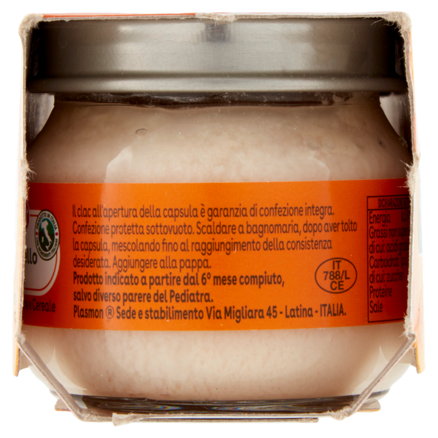 Prodotto indicato a partire dal 6° mese compiuto, salvo diverso parere del pediatra. Scaldare a bagnomaria, dopo aver tolto la capsula, mescolando fino al raggiungimento della consistenza desiderata. Aggiungere alla pappa.