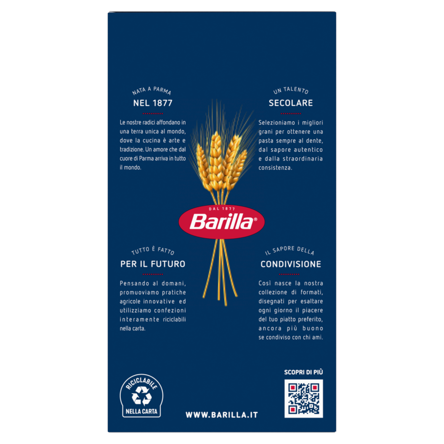 Dove c'è Barilla c'è casa Le nostre scelte Pasta: la nostra pasta, grazie alla qualità dei grani e allo spessore equilibrato di ogni formato, vive di sapore autentico e di straordinaria consistenza. Campi: sosteniamo la diffusione di pratiche agricole innovative con grande riguardo per le particolarità di ogni terreno e clima. Inoltre sono più di 8000 gli agricoltori che attraverso le loro organizzazioni sono al nostro fianco lungo l'appassionante cammino del miglioramento continuo. Grano 100% italiano: sviluppiamo varietà di grano duro esclusive e utilizziamo grani pregiati, coltivati in tutta Italia, per ottenere una pasta buona fin dal primo chicco. Scopri di più su www.barilla.it Per coltivare insieme un futuro migliore Dentro la pasta Barilla c'è la nostra storia, la passione, l'impegno delle persone e, soprattutto, il desiderio di contribuire tutti insieme ad un futuro migliore.