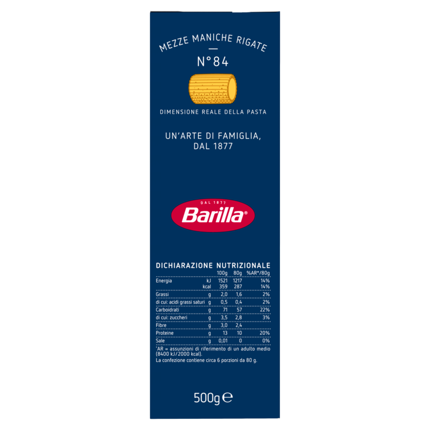 Barilla Dal 1877 Grani selezionati 100% italiani Siamo fieri di essere al fianco delle organizzazioni di 8.000 agricoltori d'Italia che coltivano grano duro di qualità per la nostra pasta. A Parma dal 1877 A Parma il buon cibo è tradizione ed eccellenza gastronomica, gioia di vivere e cultura: qui è dove siamo nati. Il domani è oggi La pasta Barilla la conosci da sempre: perciò abbiamo tolto la finestra trasparente, risparmiando 126.000 kg di plastica all'anno.* Un gesto d'amore Ogni giorno ci impegniamo a darti la nostra pasta migliore, sempre al dente, per far felice chi ami. *rimozione finestra dai Classici Barilla; valore calcolato sulle confezioni in cartoncino vendute nel 2020. Scopri di più su barilla.com/box. Per noi la qualità è una tradizione di famiglia dal 1877. www.barilla.it