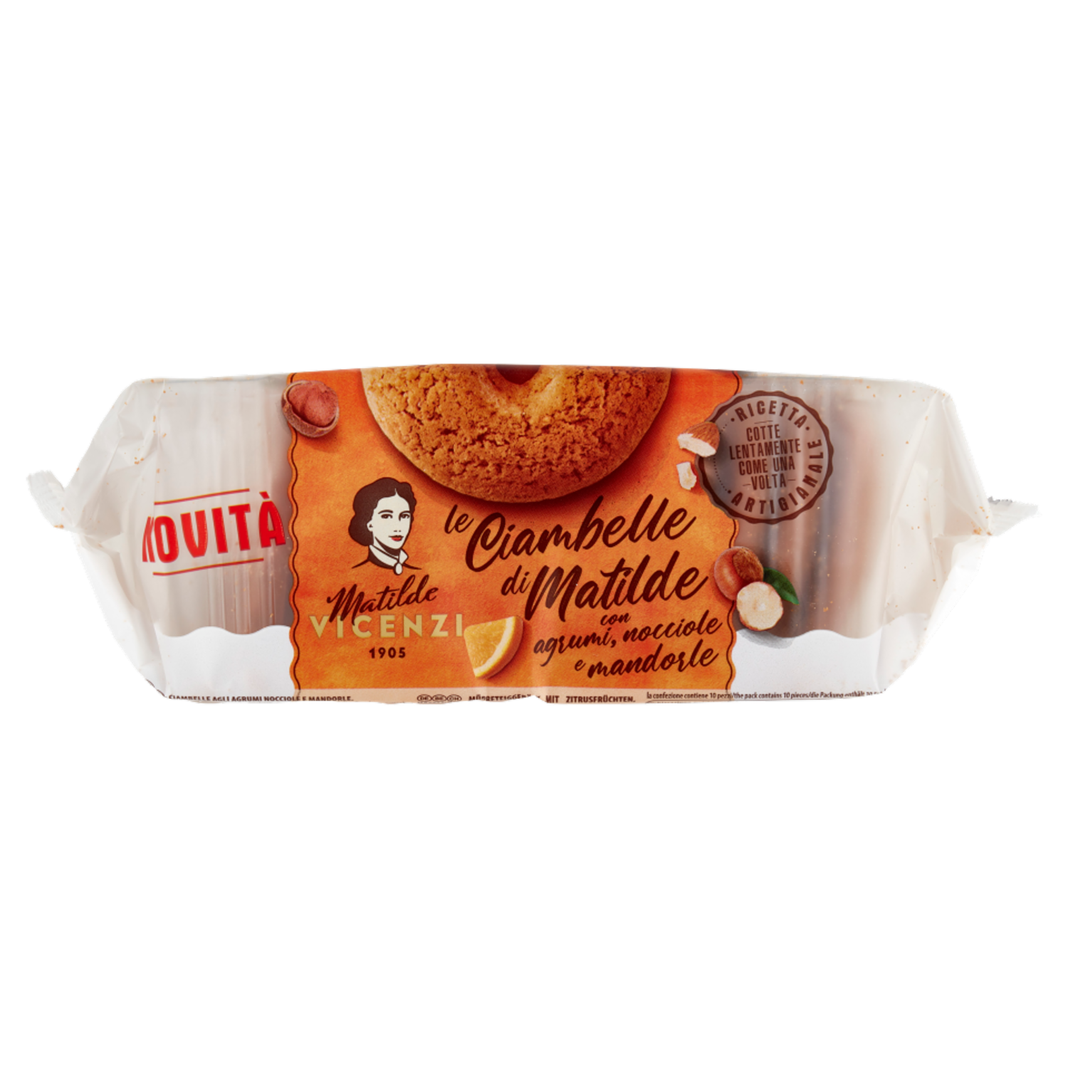 ''Una frolla ricca, golosa e piena di gusto. Le mie Ciambelle ancora oggi, come si faceva un tempo, sono cotte lentamente e confezionate ancora calde er mantenere tutto il sapore e la loro fragranza.'' Matilde Vicenzi