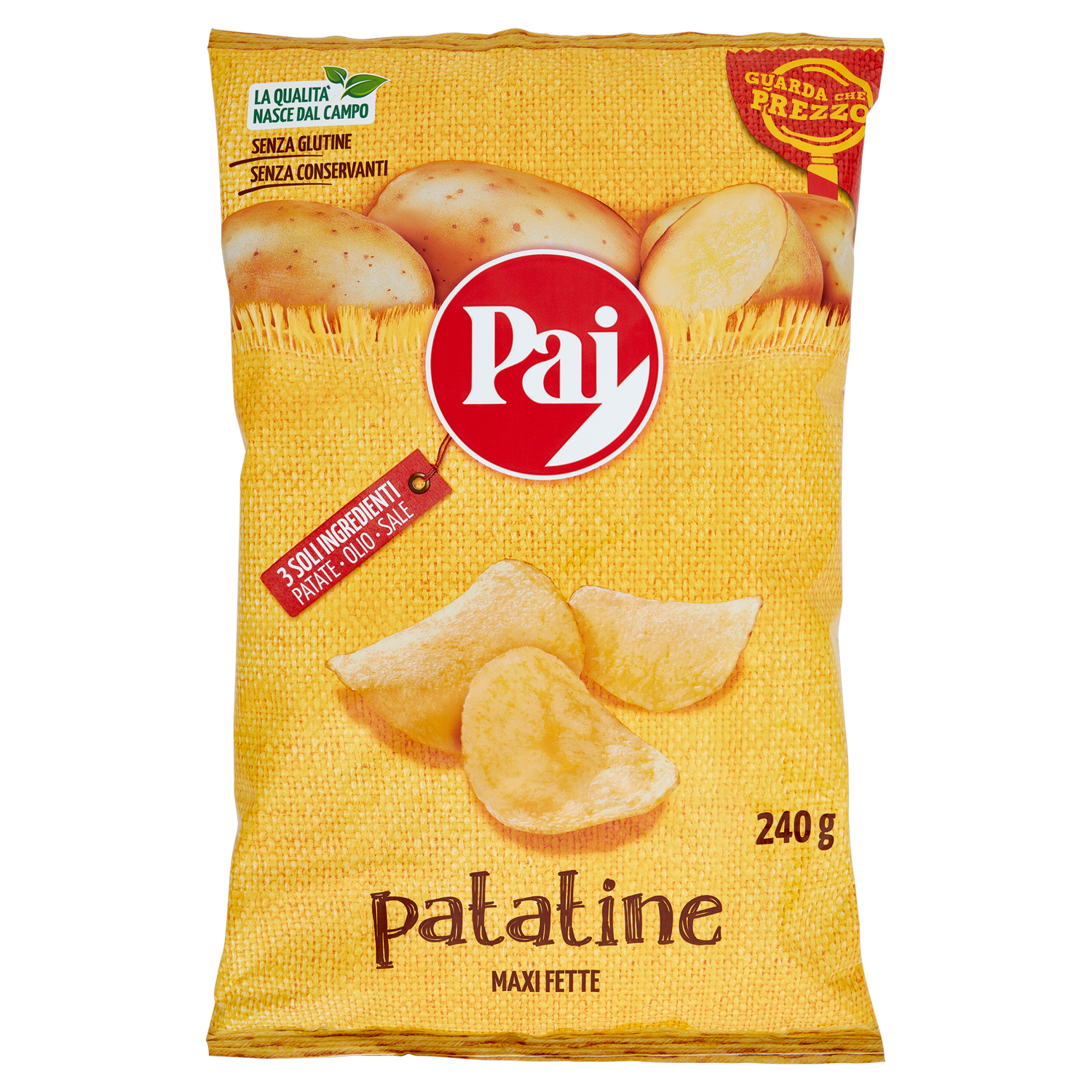 La Patatina Pai è - senza coloranti - senza conservanti - senza glutine Gra zie all'uso di olio vegetale e a un processo di cottura innovativo, la pata ina Pai è sempre buona e croccante. Infine, il confezionamento in atmosfera protettiva, conserva le patatine in tutta la loro freschezza e fragranza.