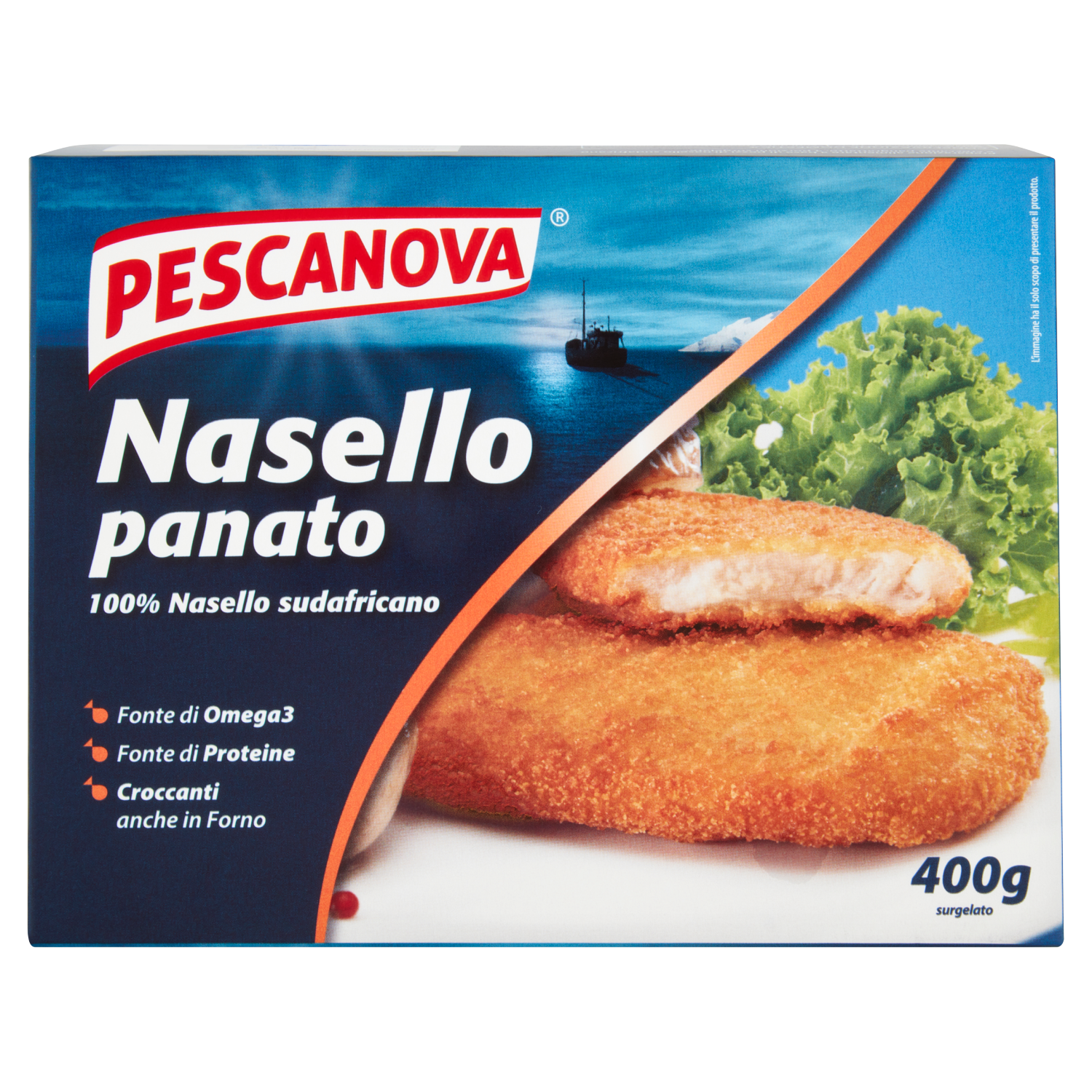 Il Nasello panato nasce dalla parte più nobile di naselli selezionati della specie Merluccius capensis/paradoxus pescati in Atlantico sud orientale naturalmente ricchi di proteine e Omega3. Sono avvolti da una friabile panatura che li rende gustosi e croccanti anche preparati al forno.