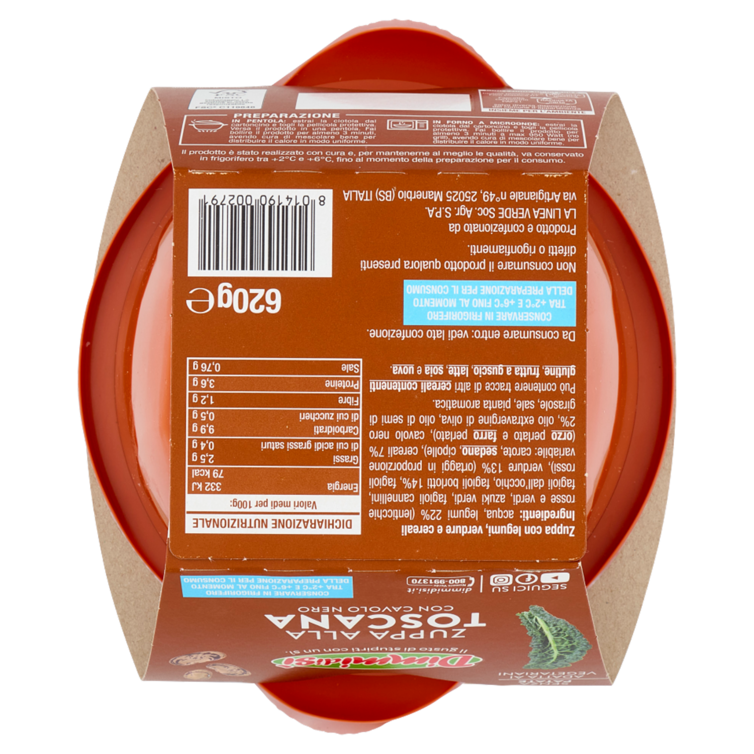 Come scaldarla In forno a microonde: fora la pellicola protettiva e scalda a massima potenza (no grill) per 3 minuti; quindi togli la pellicola protettiva: ecco la zuppa pronta da gustare! Attenzione! Il cartoncino non è adatto al microonde. In pentola: versa la zuppa in pentola e scalda a fuoco lento per alcuni minuti. Se necessario puoi congelare la zuppa, purché la confezione sia integra, entro la data di scadenza. Una volta congelata è da consumare entro un mese.