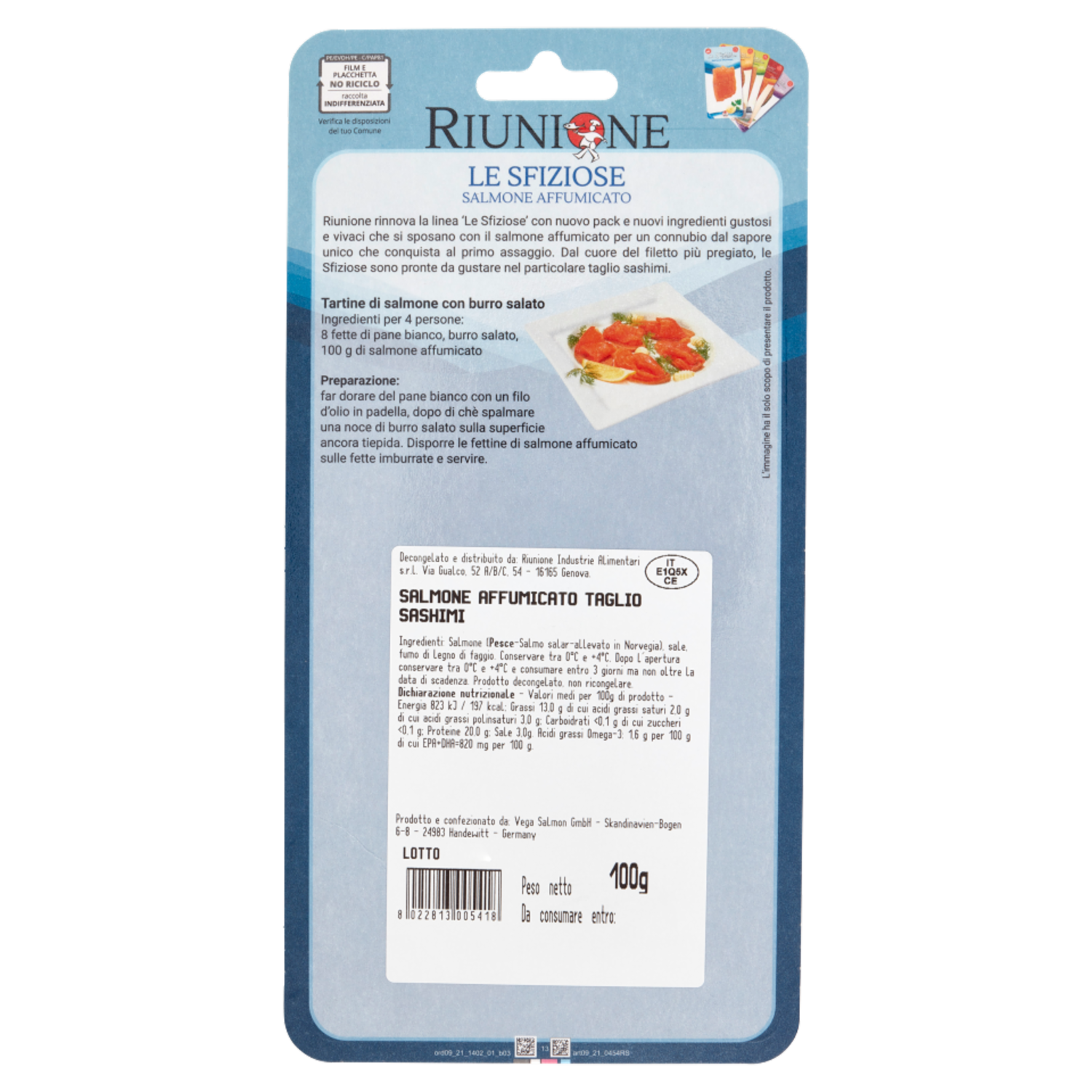 Riunione rinnova la linea 'Le Sfiziose' con nuovo pack e nuovi ingredienti gustosi e vivaci che si sposano con il salmone affumicato per un connubio dal sapore unico che conquista al primo assaggio. Dal cuore del filetto più pregiato, le Sfiziose sono pronte da gustare nel particolare taglio sashimi.