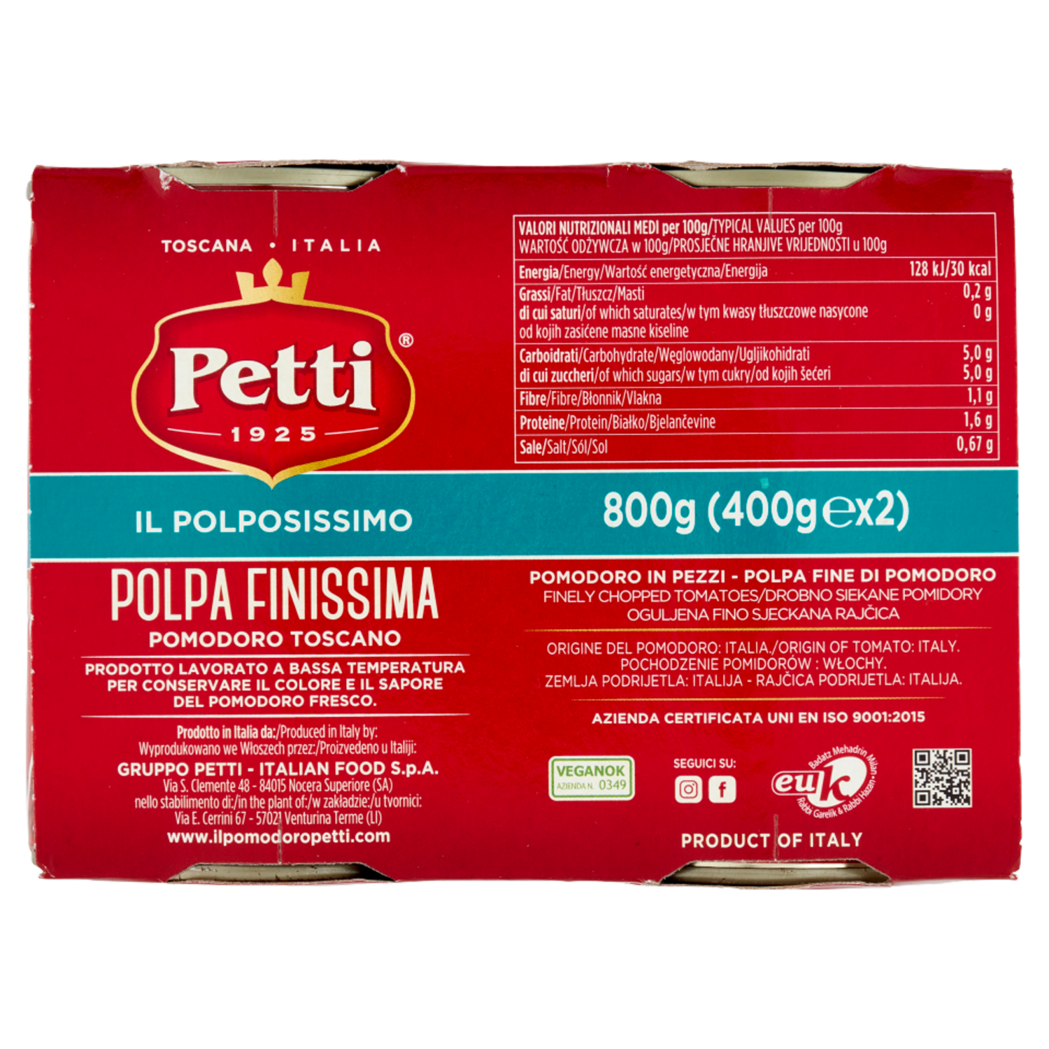 Prodotto in Italia da: Gruppo Petti - Italian Food S.p.A. Via S. Clemente 48 84015 Nocera Superiore (SA) nello stabilimento di: Via E. Cerrini 67 57021 Venturina Terme (LI)