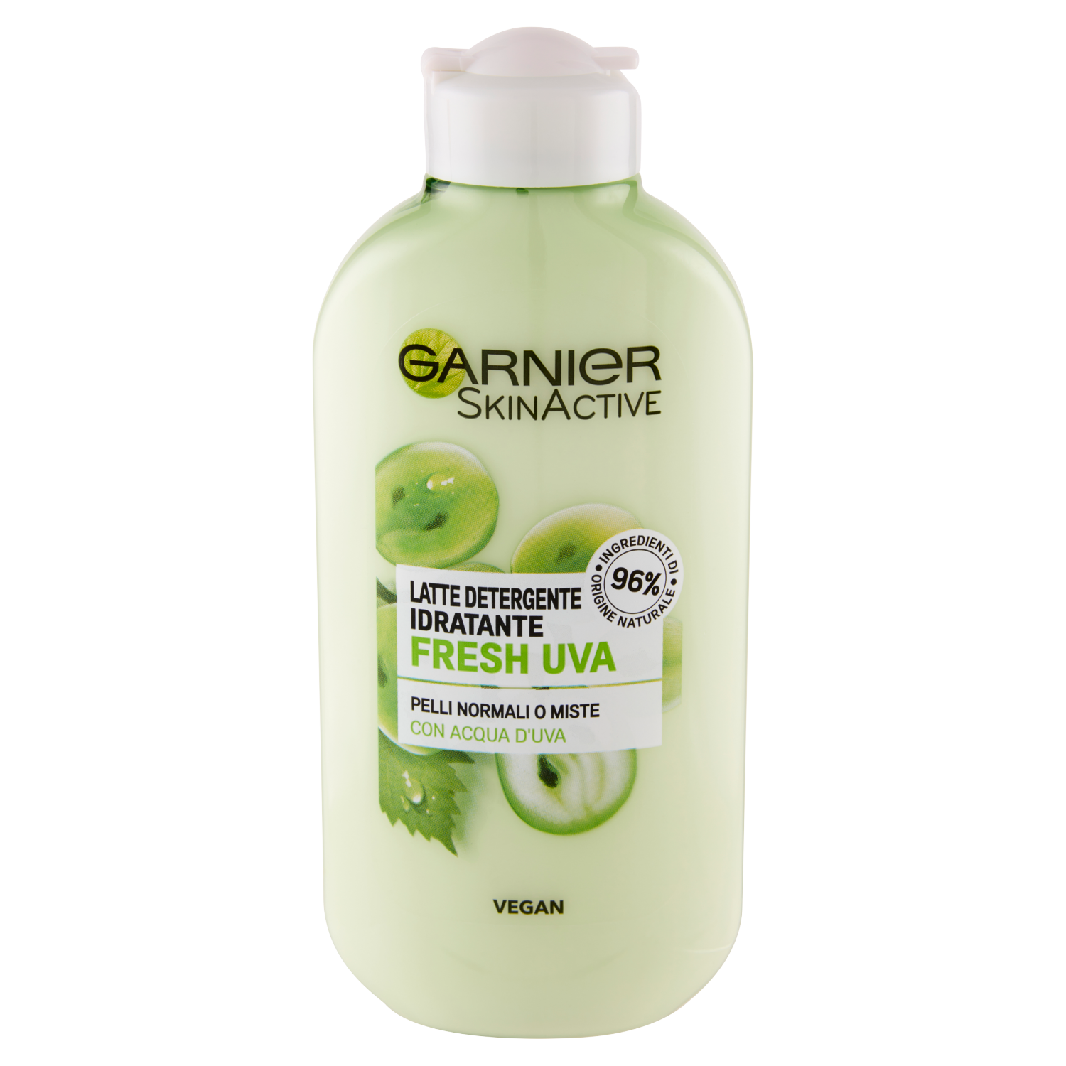 Latte detergente idratante rinfrescante per pelli normali o miste, con 96% di ingredienti di origine naturale, tra cui l'estratto d'Uva, deterge, idrata e rinfresca il viso. Per detergersi all'insegna della naturalità. Latte detergente idratante La nostra nuova generazione di detergenza con 96% di ingredienti di origine naturale arricchita con estratto d'uva, noto per essere una vera fonte di freschezza. Rimuove in maniera efficace e delicata il make-up e le impurità per una pelle pulita e rinfrescata. Il nostro impegno Questa formula contiene 96% di ingredienti di origine naturale. I nostri ingredienti possono provenire da fonti diverse, scoprile di seguito. *Il restante 4% è composto da ingredienti che garantiscono sensorialità e la buona conservazione della formula. Questa formula è senza parabeni, siliconi, oli minerali e coloranti sintetici.