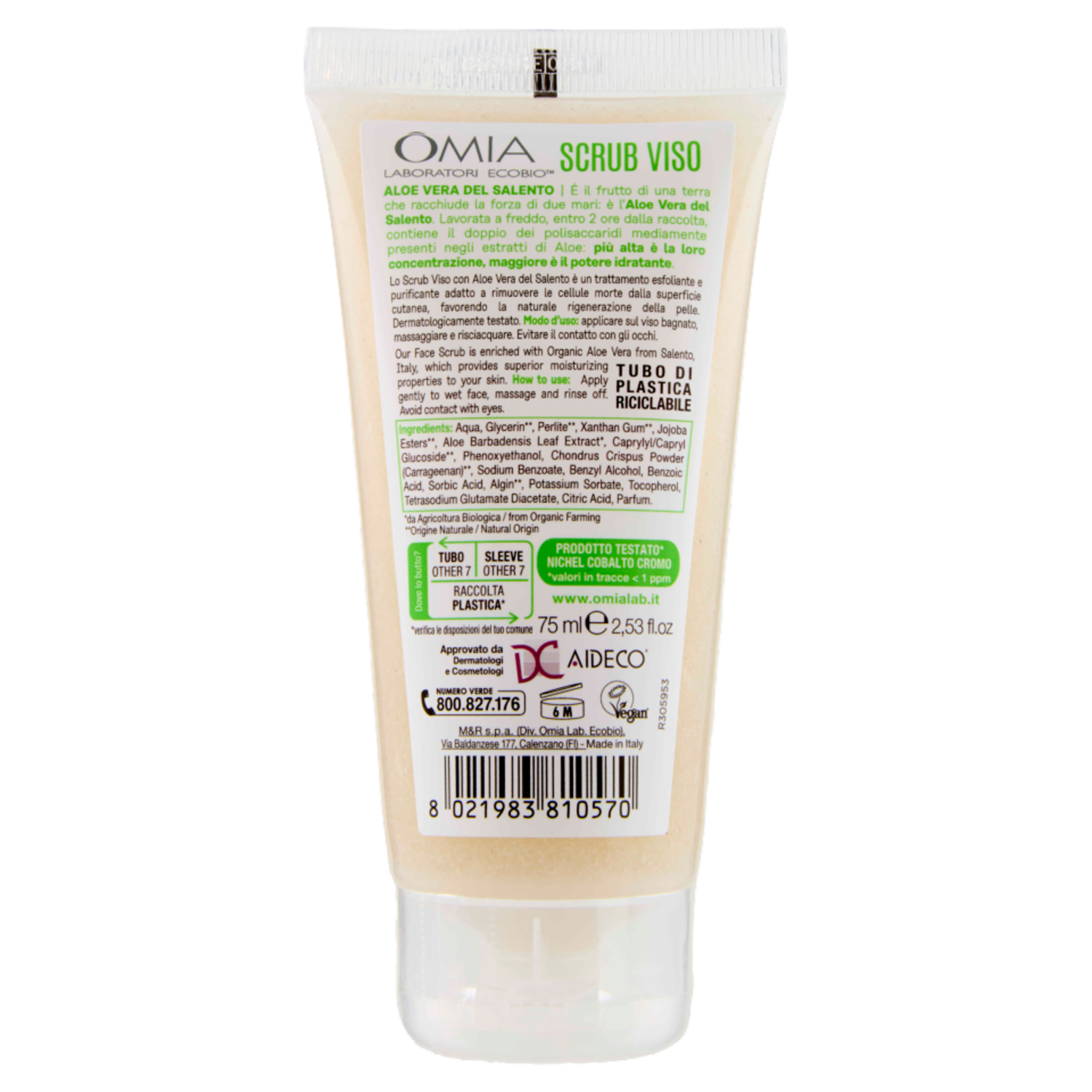 Aloe vera del Salento È il frutto di una terra che racchiude la forza di due mari: è l'Aloe Vera del Salento. Lavorata a freddo, entro 2 ore dalla raccolta, contiene il doppio dei polisaccaridi mediamente presenti negli estratti di Aloe: più alta è la loro concentrazione, maggiore è il potere idratante. Lo Scrub Viso con Aloe Vera del Salento è un trattamento esfoliante e purificante adatto a rimuovere le cellule morte dalla superficie cutanea, favorendo la naturale rigenerazione della pelle. Dermatologicamente testato. Tubo di plastica riciclabile Prodotto testato* Nichel Cobalto Cromo *valori in tracce < 1 ppm AIDECO - Approvato da Dermatologi e Cosmetologi