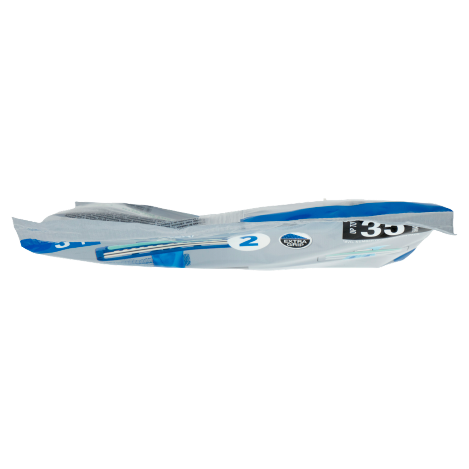 Rasoio a 2 lame progettato per durare in media fino a 7 rasature. Rasoio con striscia lubrificante, manico antiscivolo e un *tasto per pulire le lame.
