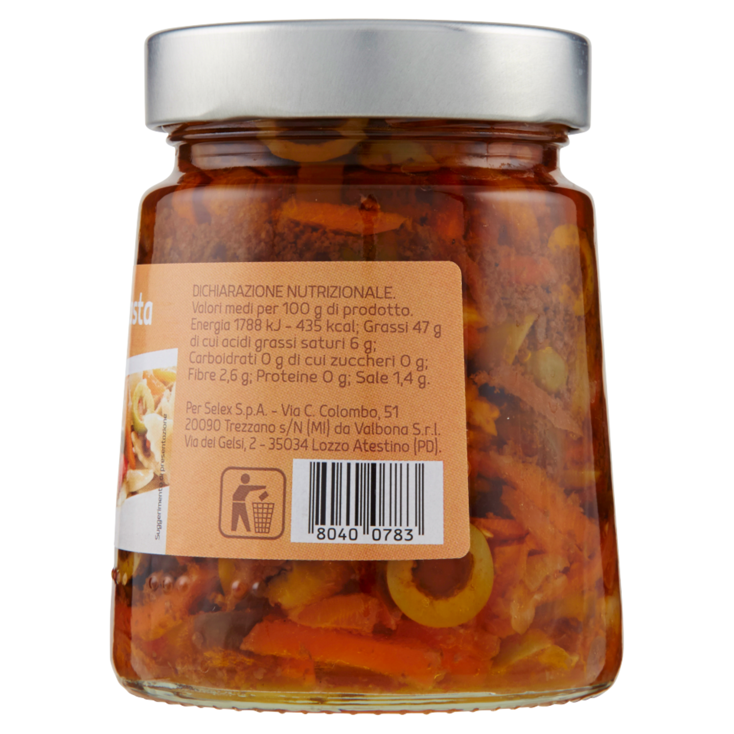 Ortaggi in proporzione variabile 53,5% (carote, olive verdi, peperoni, melanzane, olive nere, capperi)