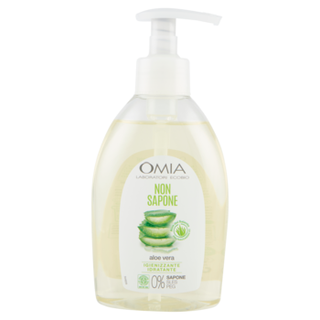 Aloe vera del Salento È il frutto di una terra che racchiude la forza di due mari: è l'Aloe Vera del Salento. Lavorata a freddo, entro 2 ore dalla raccolta, contiene il doppio dei polisaccaridi mediamente presenti negli estratti di Aloe: più alta è la loro concentrazione, maggiore è il potere idratante. Formulato e sviluppato nei nostri Laboratori Ecobio Dermatologicamente testato Il Non Sapone Omia igienizza la pelle di mani, viso e corpo senza impoverirne le naturali difese. Ideale anche sotto la doccia. Prodotto testato* Nichel Cobalto Cromo *valori in tracce < 1 ppm