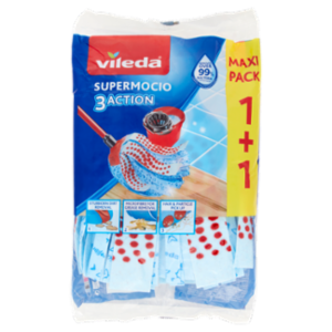 XL** **Strisce esterne 30% più ampie rispetto alle strisce interne per permettere un contatto più ampio con il pavimento. Rimuove oltre il 99% dei batteri solo con acqua* * Rimuove E. coli & S. aures da pavimenti in legno e piastrelle in ceramica, come testato in un laboratorio indipendente www.vileda.com