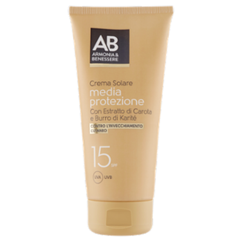 Esporsi al sole in sicurezza, traendone i soli benefici, è la filosofia alla base della linea di solari ''Armonia e Benessere''. Formulati per ridurre al minimo il rischio di allergie ed eritemi, si avvalgono dell'efficacia di filtri chimici di ultima generazione, proteggendo dalle scottature e prevenendo i danni del foto invecchiamento cutaneo. Il Burro di Karité e l'Estratto di Carota svolgono un'azione emolliente e nutriente, la Vitamina E ha proprietà antiossidanti e svolge un'azione antiradicali liberi. La Crema solare SPF15 è indicata per le pelli scure o già abbronzate; resistente all'acqua.